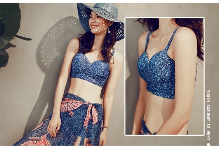 【送料無料】タンキニ 水着 ショーパン パレオ 3点セット 青 ブルー 総柄 個性的 セパレート 水着 ビキニ 上下セット きれいめ オリエンタル エスニック ミモレ丈 透け感 巻きスカート セクシー カワイイ 体型カバー 韓国 水着 クール カッコイイ イイ女 スタイルアップ モテ レディース M 大きいサイズ L XL リゾート バカンス 海 プール 旅行 スイムウェア 存在感 こなれ感 インスタ映え 海外 モデル 写真 撮影 水着 イベント 衣装 グラビア 10代 20代 30代 db3411