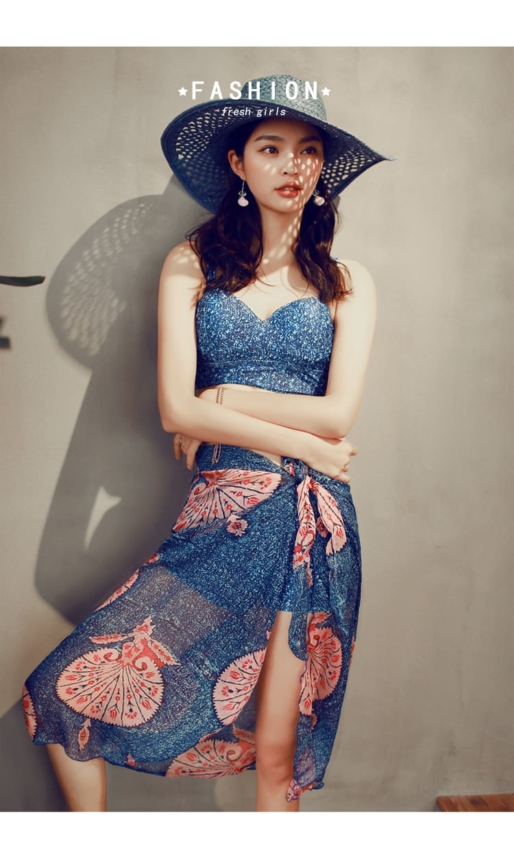 パレオ付きのエキゾチックなビキニ水着の3点セット^^