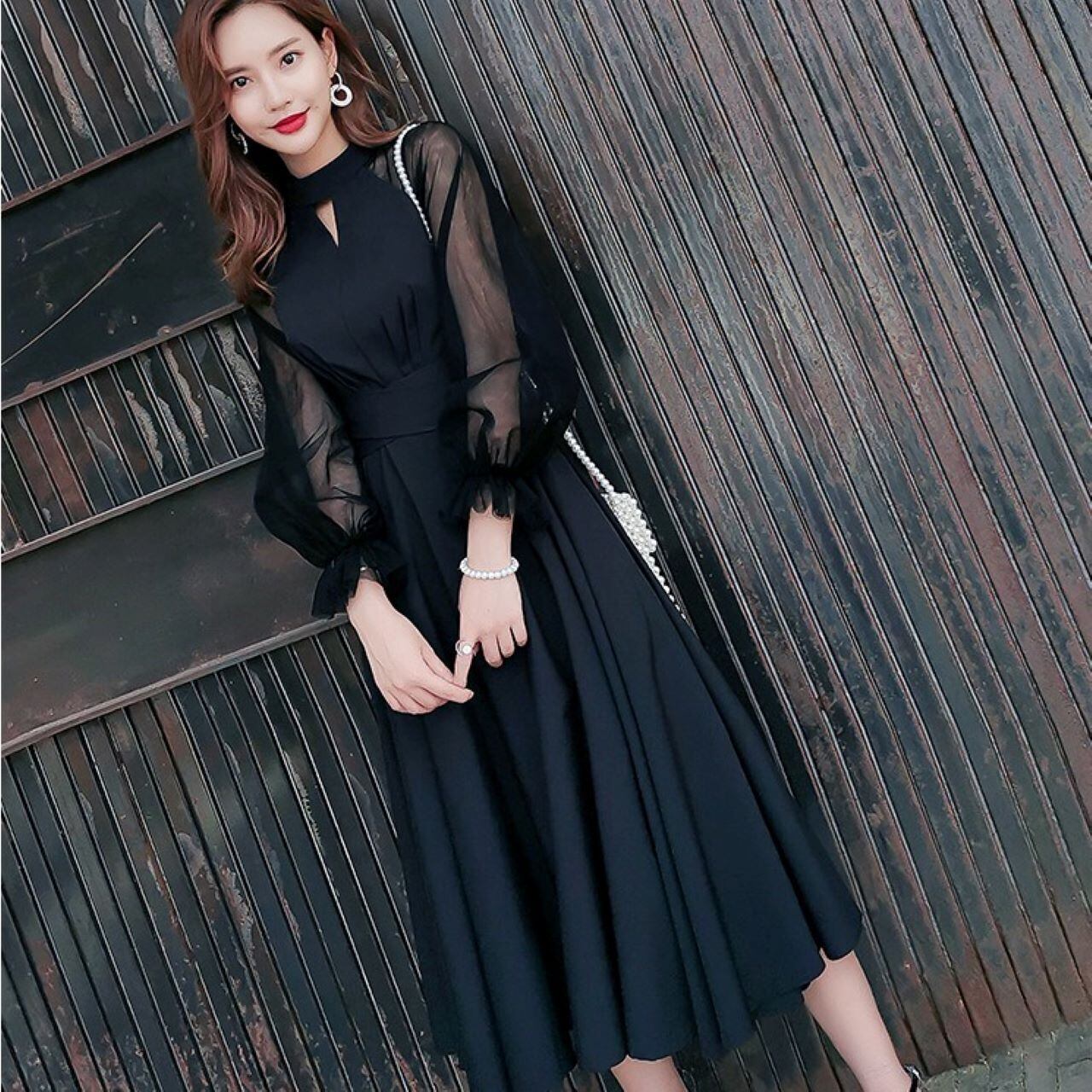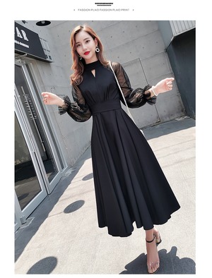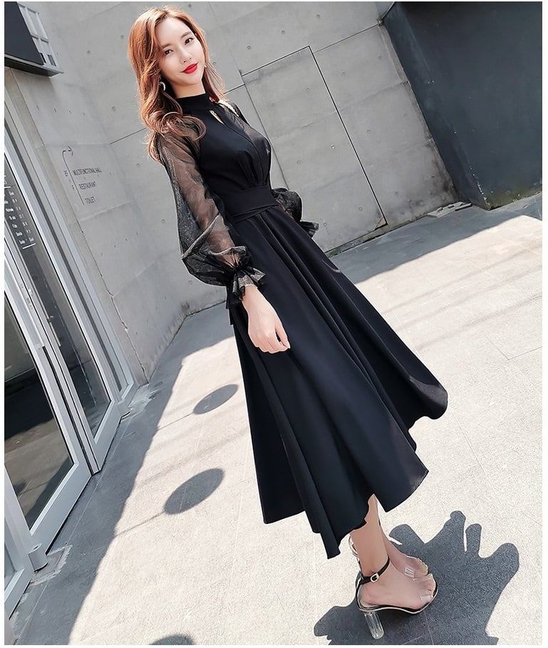 【送料無料】 パーティ ドレス ワンピース 透け感 フレア シースルー リボン フレア パフスリーブ 長袖 ミモレ丈 結婚式 お呼ばれ 演奏会 発表会 フォーマル シック 二次会 無地 きれいめ エレガント 華やか プリティ カワイイ レディース 脚長 着痩せ XS S M L XL 2XL 小さいサイズ 大きいサイズ おしゃれ 春 夏 秋 冬 ブラック 黒 大人可愛い 存在感 主役級 こなれ感 韓国ファッション 海外トレンド インスタ映え 大人気 流行 10代 20代 30代 40代 no2329