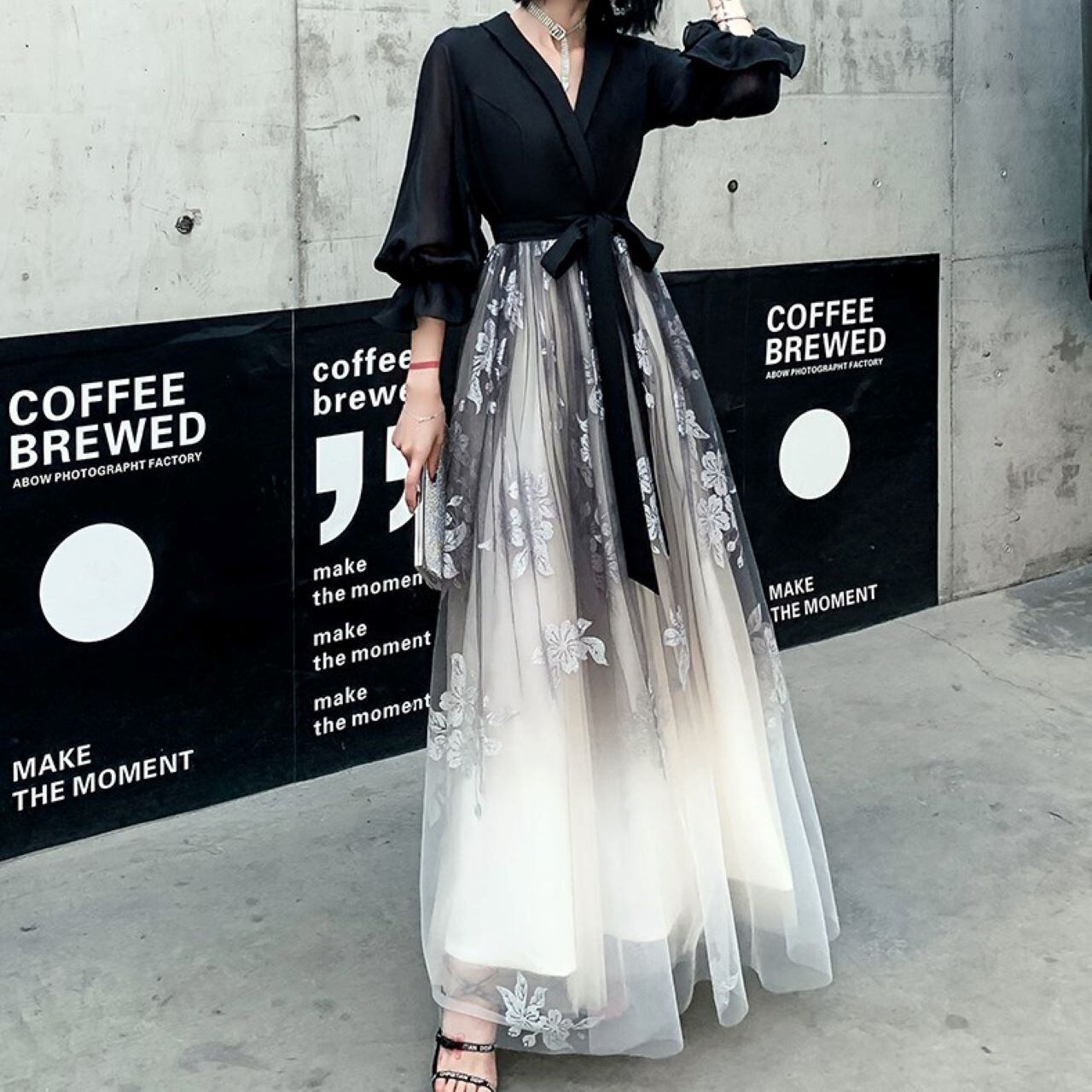 【送料無料】パーティ ドレス ワンピ ワンピース シフォン リボン 長袖 カッコイイ 花柄 ロング マキシ 結婚式 お呼ばれ 演奏会 発表会 フォーマル シック 二次会 きれいめ エレガント 華やか プリティ カワイイ レディース 脚長 着痩せ XS S M L XL 2XL 3XL 小さいサイズ 大きいサイズ おしゃれ 春 夏 秋 冬 ブラック ホワイト 黒 白 大人可愛い 存在感 主役級 こなれ感 韓国ファッション 海外トレンド インスタ映え 大人気 10代 20代 30代 40代 no2334