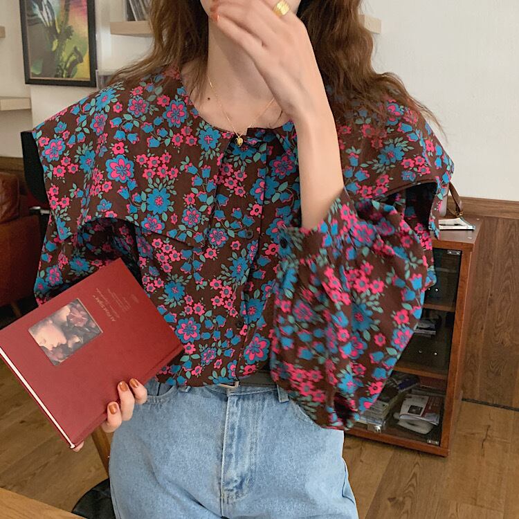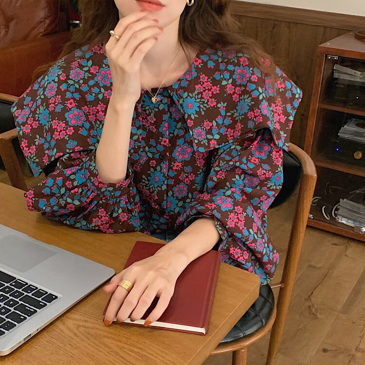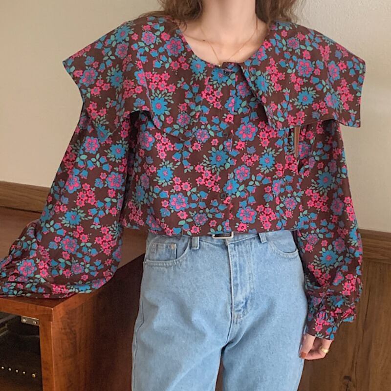 【送料無料】トップス シャツ ブラウス ビビット 花柄 お姉さん 着回し 可愛い ゆったりめ 襟付き 個性的 きれいめ プリティ カジュアル スタイリッシュ モテる 通勤 通学 着痩せ レディース ワンサイズ フリーサイズ ブラウン 茶色 春 夏 スプリング サマー おしゃれ デート 大人可愛い お出かけ 存在感 こなれ感 抜け感 普段使い デイリー使い 休日 主役級 インスタ映え 韓国ファッション 海外トレンド 大人気 高見え 流行 10代 20代 30代 40代 プチプラ db3480