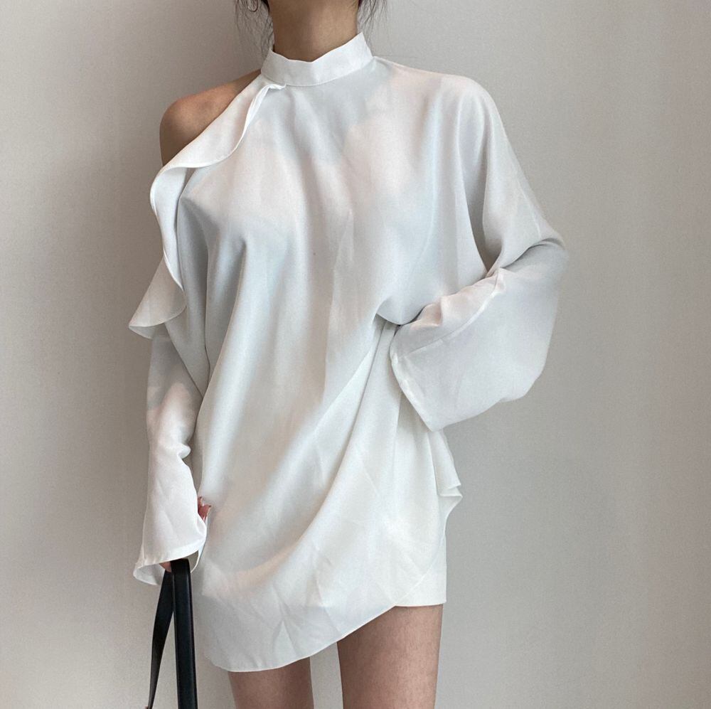 【送料無料】2色 トップス シャツ ブラウス ロング 肩出し お姉さん ウエストマーク 着回し 可愛い 長袖 ゆったりめ きれいめ プリティ エレガント スタイリッシュ モテる 通勤 通学 着痩せ レディース ワンサイズ フリーサイズ ホワイト ブラック 白 黒 春 夏 スプリング サマー おしゃれ デート 大人可愛い お出かけ 存在感 こなれ感 抜け感 普段使い デイリー使い 休日 主役級 インスタ映え 韓国ファッション 海外トレンド 大人気 高見え 流行 10代 20代 30代 プチプラ db3490