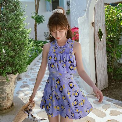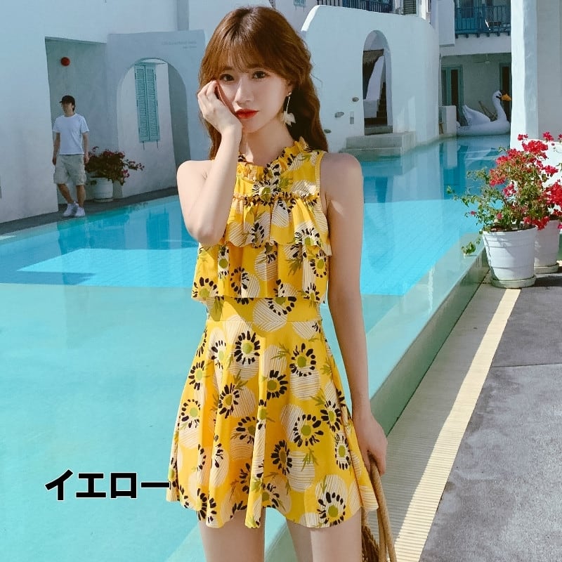 【送料無料】5色 ワンピース 水着 ワンピース ピンク パープル イエロー グリーン ブルー グリーン ショート丈 ラウンドネック お得 タンキニ水着 ビスチェ ウエストマーク リボン 花柄 ボタニカル 韓国 水着 ビキニ スイムウェア レディース おしゃれ 可愛い 個性的 夏 db3453