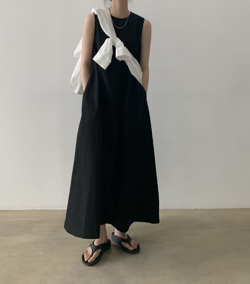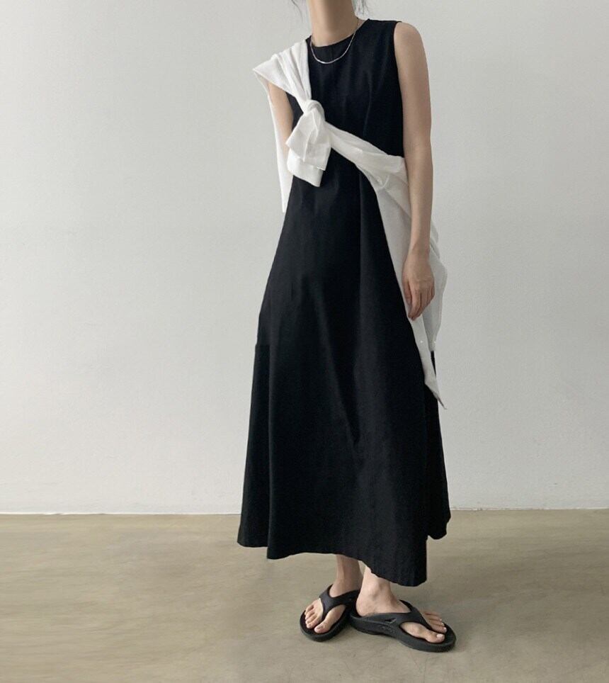 【送料無料】2色 ワンピ ワンピース スカート ロング シック クルーネック シンプル 体形カバー セクシー ノースリーブ カッコイイ クール エレガント きれいめ 華やか ゆったり お姉さん カワイイ レディース 脚長 ワンサイズ フリーサイズ おしゃれ 夏 サマー ブラック ホワイト 黒 白 大人可愛い 普段使い デイリー使い 休日 お出かけ デート 女子会 存在感 主役級 こなれ感 韓国ファッション 海外トレンド インスタ映え 大人気 流行 10代 20代 30代 40代 プチプラ db3473