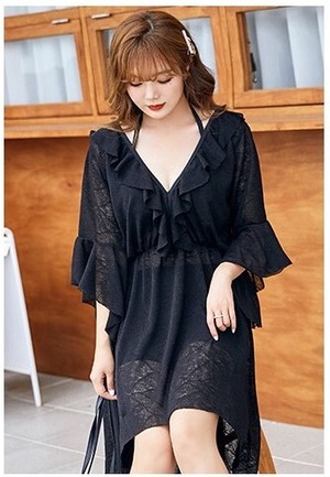 【送料無料】 水着 セット 大きいサイズ セット ワンピース 水着 モノキニ 総レース フリル セクシー キャミソール 3点セット おしゃれ 大人かわいい Vネック カシュクール 透け感 黒 ブラック 無地 個性的 モテ レディース 脚カバー バックシャン 主脚級 韓国 ワンピ 水着 オールインワン 2XL 3XL 4XL 5XL リゾート バカンス 海 プール スイムウェア 海外 高見え グラビア 写真 撮影 衣装 コスプレ ナイトプール ビーチ 10代 20代 30代 主役級 db3420