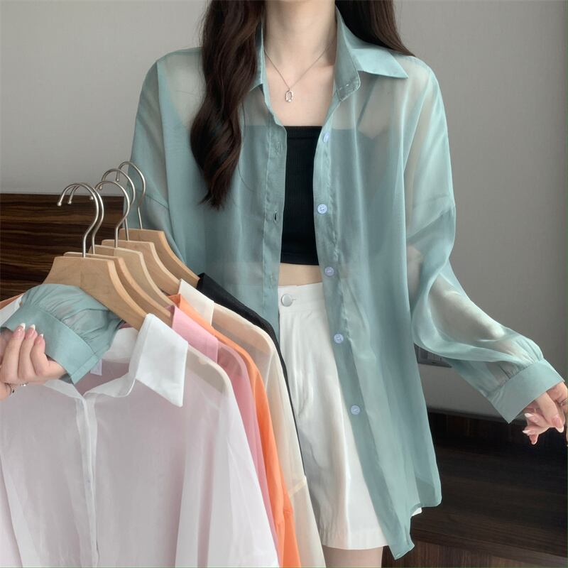 【送料無料】6色 シャツ ブラウス 透け感 セクシー 長袖 無地 カッコイイ カジュアル クール 着回し ゆったりめ スタイリッシュ モテる 着痩せ レディース トップス ワンサイズ フリーサイズ アプリコット ホワイト グリーン ブラック ピンク オレンジ 春 夏 おしゃれ デート 大人可愛い お出かけ 存在感 こなれ感 抜け感 普段使い デイリー使い 休日 主役級 インスタ映え 韓国ファッション 海外トレンド 大人気 高見え 流行 10代 20代 30代 40代 プチプラ db3535