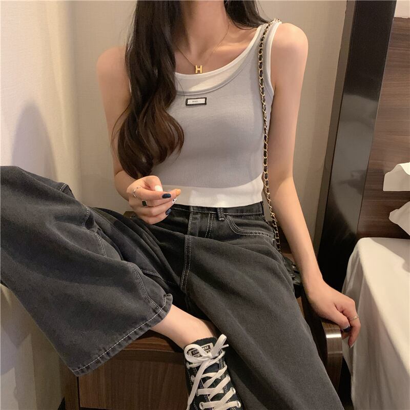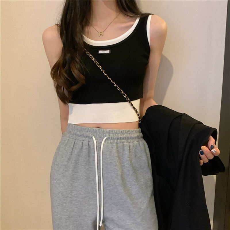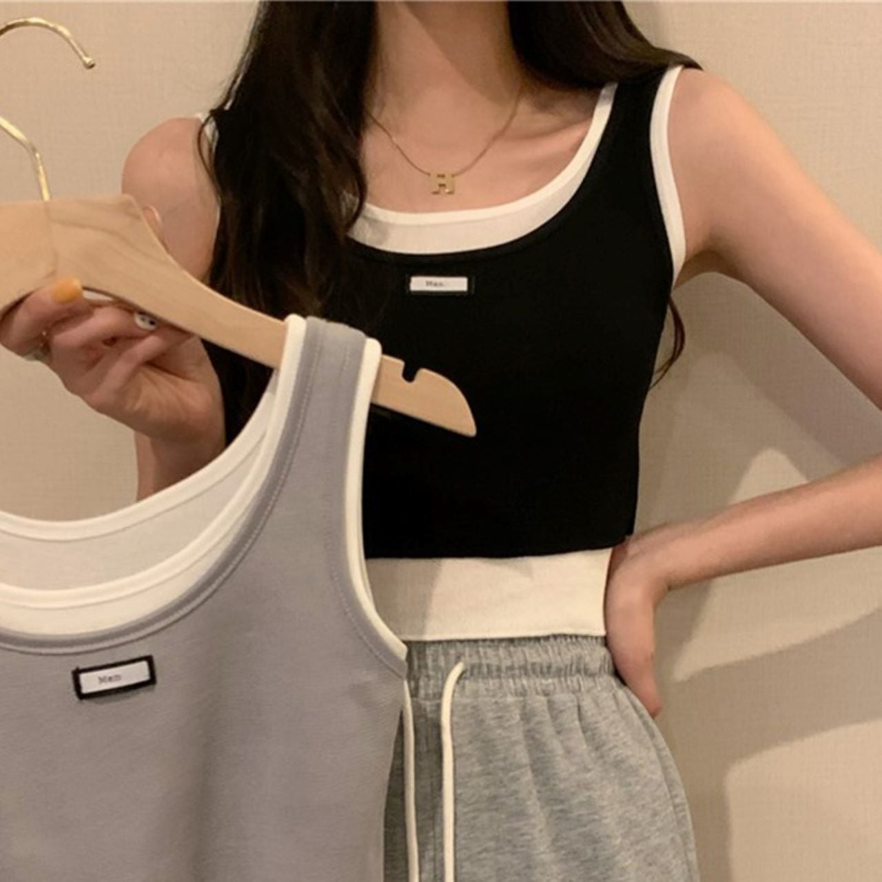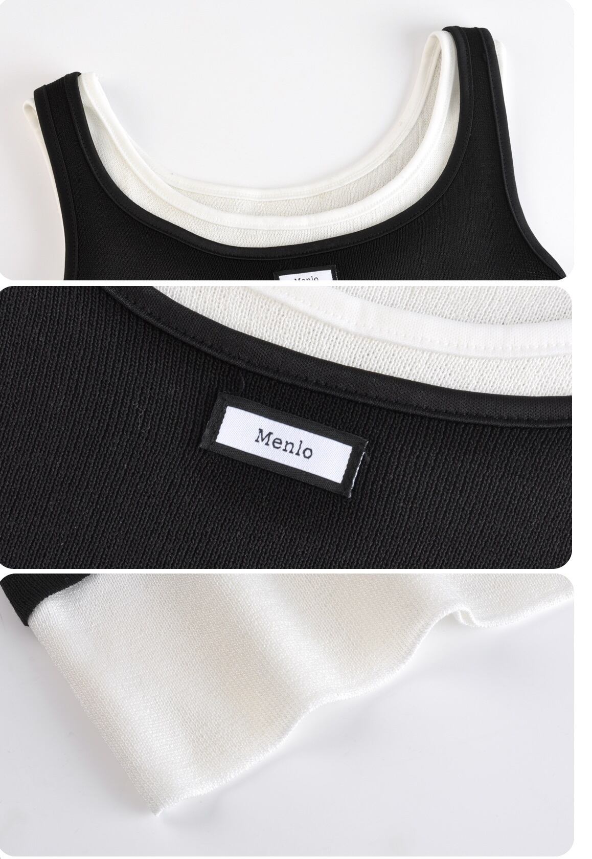 【送料無料】2色 ベスト バイカラー ノースリーブ 重ね着風 セクシー クール カッコイイ カジュアル 着回し タイト ぴったりめ スタイリッシュ モテる 着痩せ レディース トップス ワンサイズ フリーサイズ グレー ブラック 灰色 黒 夏 サマー おしゃれ デート 大人可愛い お出かけ 存在感 こなれ感 抜け感 普段使い デイリー使い 休日 主役級 インスタ映え 韓国ファッション 海外トレンド 大人気 高見え 流行 10代 20代 30代 40代 プチプラ db3538