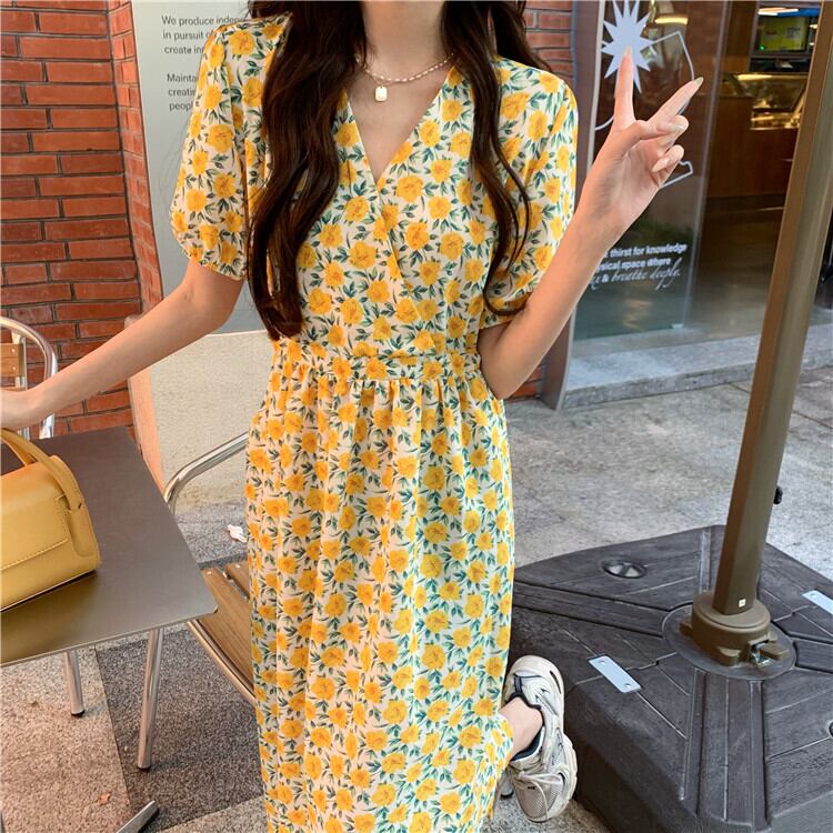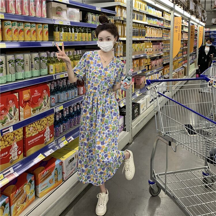 【送料無料】3色 花柄ワンピース ロング丈 Vネック ミモレ丈 半袖 きれいめ 上品 華やか 学生 ゆったり お姉さん カワイイ ガーリー キュート レディース 着痩せ 着回し 脚長 ワンサイズ フリーサイズ おしゃれ 夏 サマー ブルー イエロー ピンク 青 黄色 大人可愛い 普段使い デイリー使い 休日 お出かけ デート 女子会 存在感 主役級 こなれ感 韓国ファッション 海外トレンド インスタ映え 大人気 流行 10代 20代 30代 40代 プチプラ db3543
