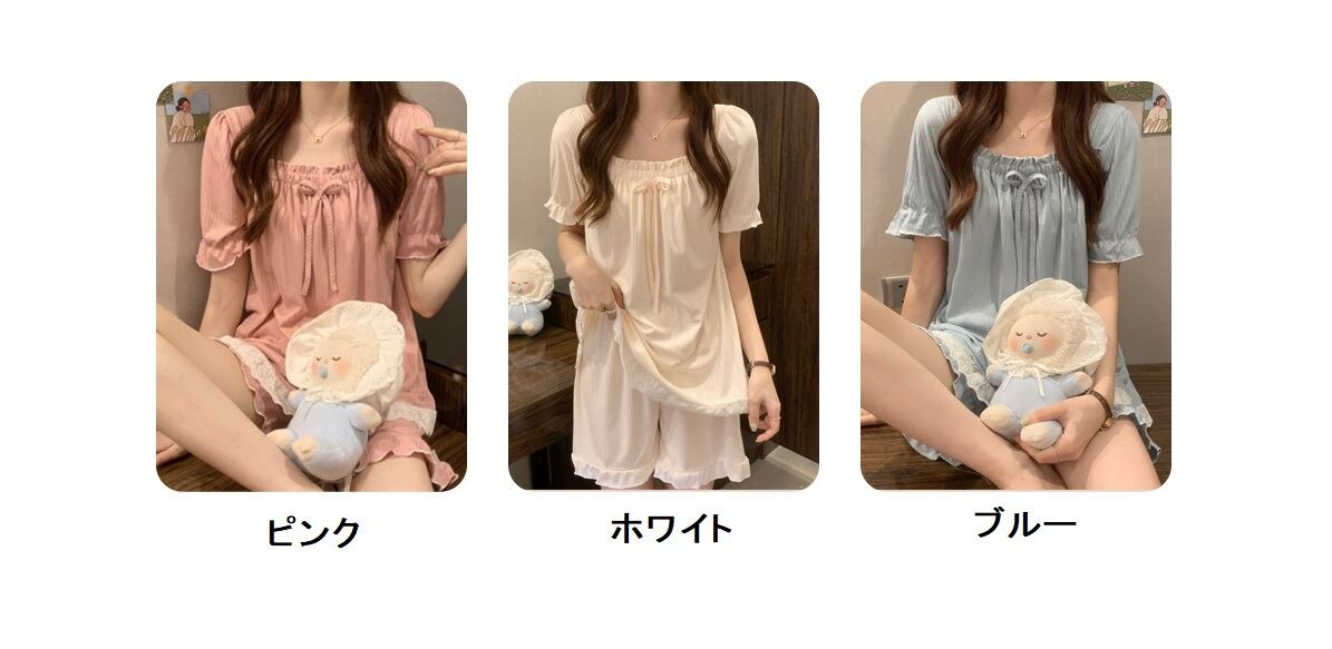 【送料無料】3色 ルームウェア ミモレ丈 半袖 フリル パンツ 2点セット ツーピース ガーリー プリティ スタイリッシュ レディース 部屋着 ラフ ナイトウエア パジャマ 寝間着 ピンク ブルー ホワイト おしゃれ かわいい ラブリー ガーリー ワンサイズ フリーサイズ 可愛い 個性的 インスタ映え デート お泊り 女子会 お揃い 双子 コーデ 旅行 パジャマパーティ 主役級 10代 20代 夏 サマー トレンド 抜け感 オシャレ ゆったり らくちん ルーズ ゆる キュート プチプラ db3546