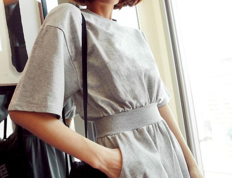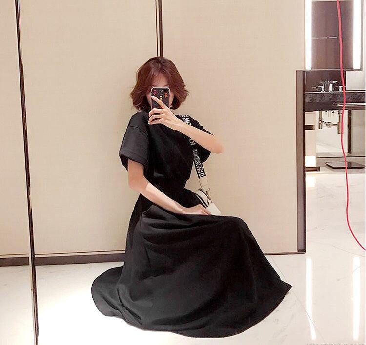 【送料無料】ロングワンピース クルーネック ミモレ丈 半袖 フレアワンピース カジュアル ドローストリング ハイウエスト きれいめ ブラック グレー 上品 華やか ゆったり お姉さん カワイイ ガーリー キュート レディース 着痩せ 着回し 脚長 おしゃれ 夏 サマー 大人可愛い 普段使い デイリー使い 休日 お出かけ デート 女子会 存在感 主役級 こなれ感 韓国ファッション 海外トレンド インスタ映え 大人気 流行 10代 20代 30代 40代 プチプラ db3649