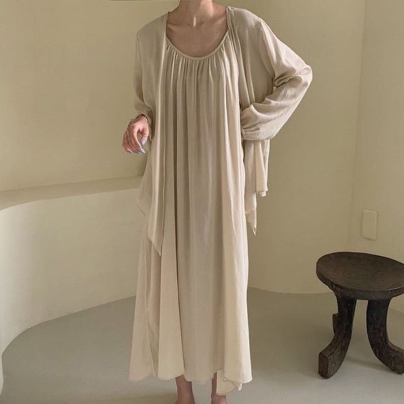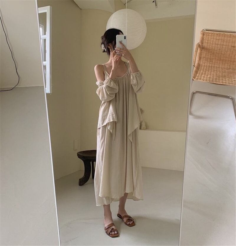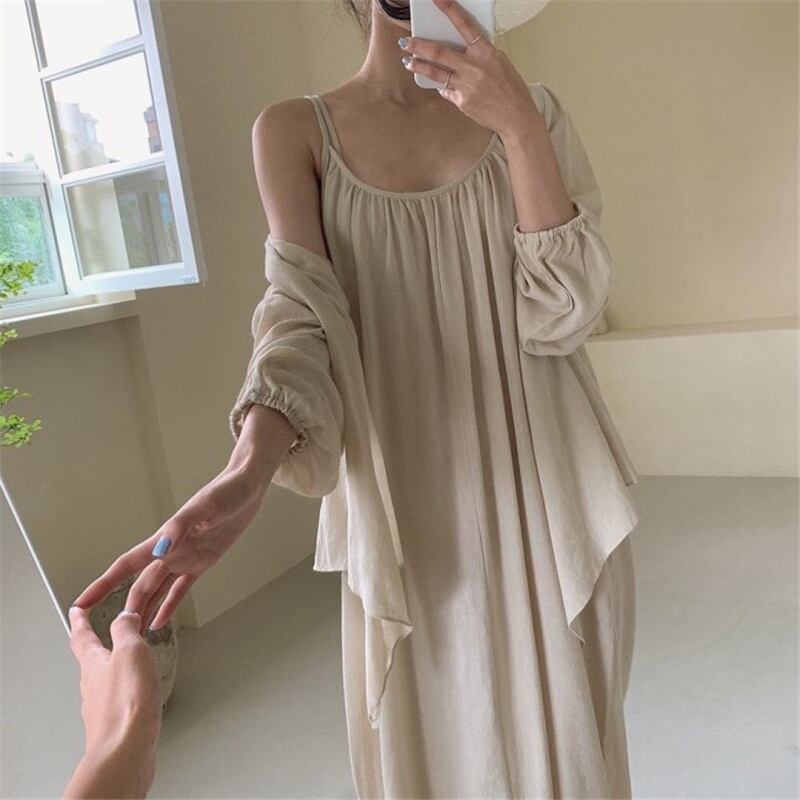 【送料無料】セットアップ ツーピース 2点セット ショール 長袖 ロング丈 ロングワンピース キャミワンピ 大人 お姉さん きれいめ 上品 シック ゆったり ラフ モテる レディース シンプル ベージュ 華やか 大人可愛い ワンサイズ フリーサイズ 脚長 美脚 着痩せ 着回し スタイルアップ カワイイ 春 夏 デート 女子会 普段使い デイリー使い 休日 お出かけ 存在感 主役級 こなれ感 インスタ映え 韓国ファッション 海外トレンド 大人気 高見え 流行 10代 20代 30代 プチプラ db3558