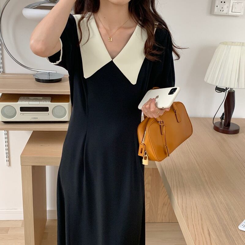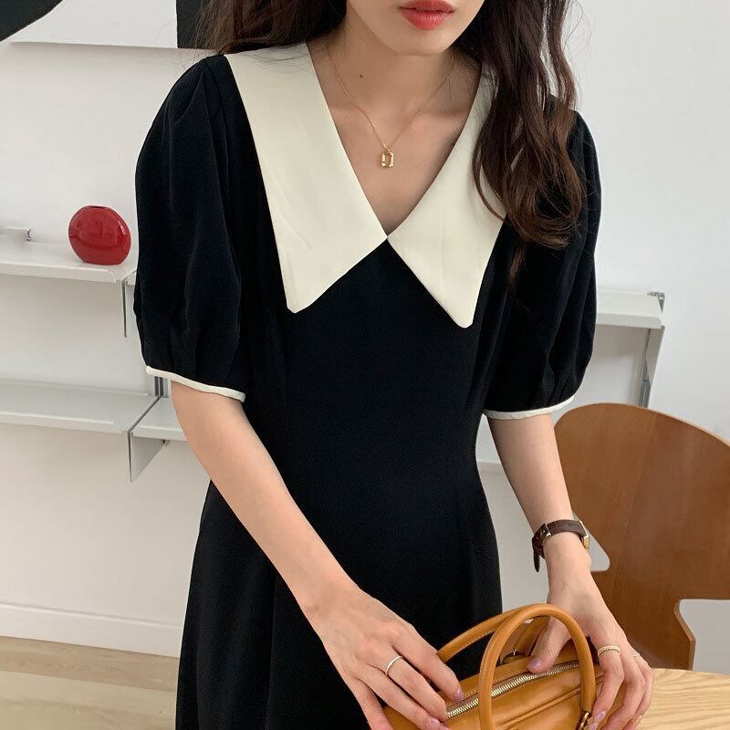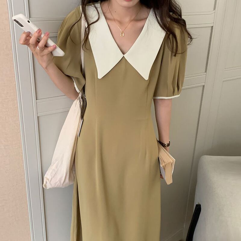 【送料無料】2色 半袖ワンピース パフスリーブ 無地 上品 ロング ウエストマーク ハイウエスト シック クール フレア エレガント きれいめ シンプル ミモレ丈 ゆったり お姉さん カワイイ レディース 着痩せ 着回し 脚長 ワンサイズ フリーサイズ おしゃれ 春 夏 カーキ ブラック 黒 大人可愛い 普段使い デイリー使い 休日 お出かけ デート 女子会 存在感 主役級 こなれ感 韓国ファッション 海外トレンド インスタ映え 大人気 流行 10代 20代 30代 40代 プチプラ db3561