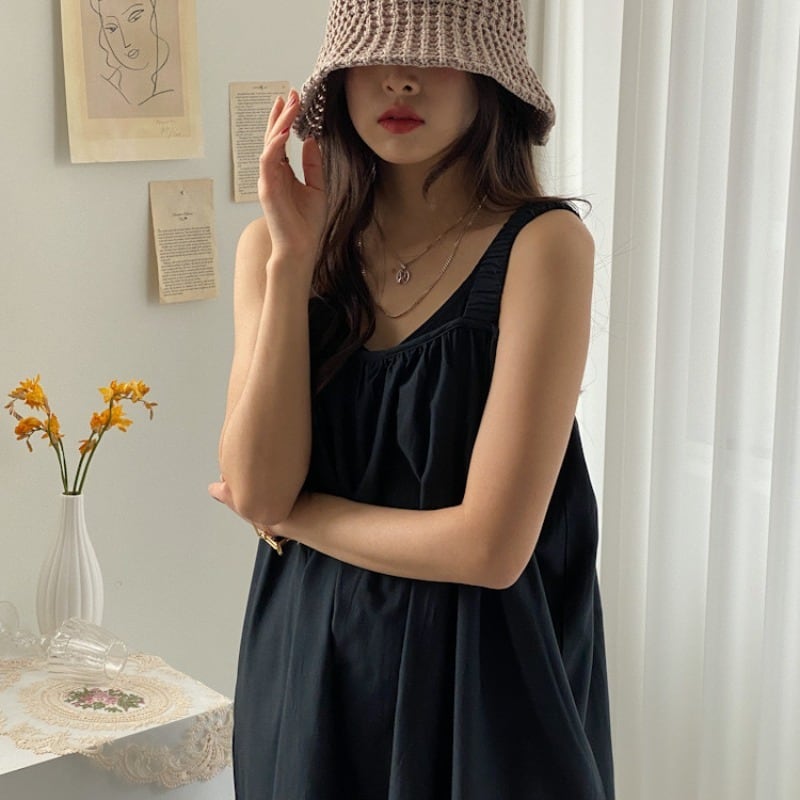 【送料無料】ロングワンピース 袖なし ジャンスカ ノースリーブ 黒 カーキ グリーン 無印 カジュアル ワンピ ドレス ジャンパースカート 春 夏 チュニック ブラック 緑 シンプル かっこいい ルーズ 楽ちん 10代 20代 30代 40代 韓国 ファッション クアンク コーデ プチプラ お出かけ 買い物 部屋着 ルームウェア 重ね着 着回し ママ 体型カバー リラックス ラフ 大人かわいい ゆるカジ 綺麗め ふわんり フレアワンピース ロング丈 長め ベアトップ風 db3562