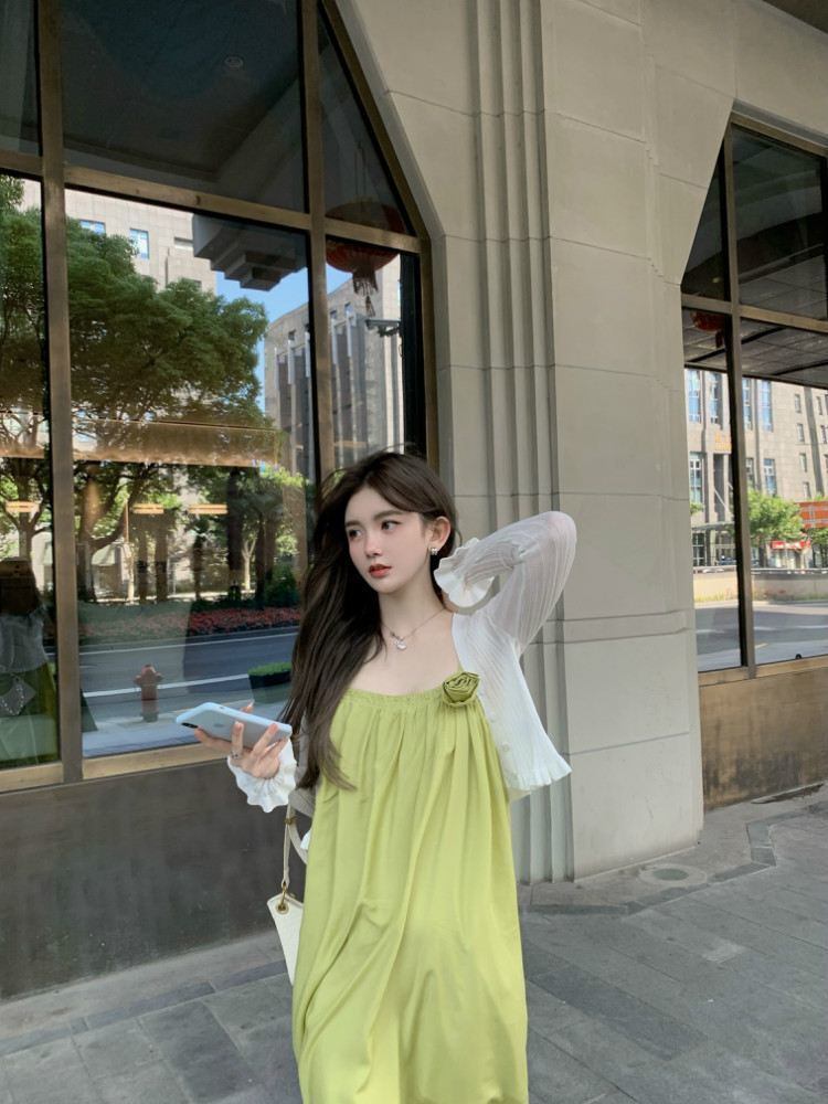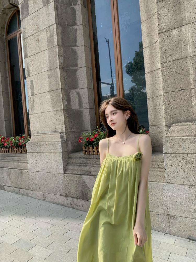 【送料無料】キャミソールワンピース スクエアネック ミモレ丈 半袖 グリーン系 タック フレアワンピース ハイウエスト きれいめ 上品 華やか 学生 ゆったり お姉さん カワイイ ガーリー キュート レディース 着痩せ 着回し 脚長 おしゃれ 夏 サマー 大人可愛い 普段使い デイリー使い 休日 お出かけ デート 女子会 存在感 主役級 こなれ感 韓国ファッション 海外トレンド インスタ映え 大人気 流行 10代 20代 30代 40代 プチプラ db3657