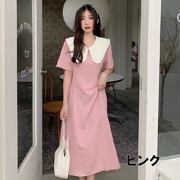 【送料無料】3色 襟付きロングワンピース ドレス 半袖 ラージカラー 襟コンシャス ダブルカラー 無地 上品 ロング ウエストマーク ハイウエスト シック フレア エレガント きれいめ シンプル ミモレ丈 ゆったり お姉さん カワイイ レディース 着痩せ 着回し 脚長 ワンサイズ フリーサイズ おしゃれ 春 夏 カーキ ブラック 黒 大人可愛い 普段使い デイリー使い 休日 お出かけ デート 女子会 存在感 主役級 こなれ感 海外トレンド 大人気 流行 10代 20代 30代 40代 db3659