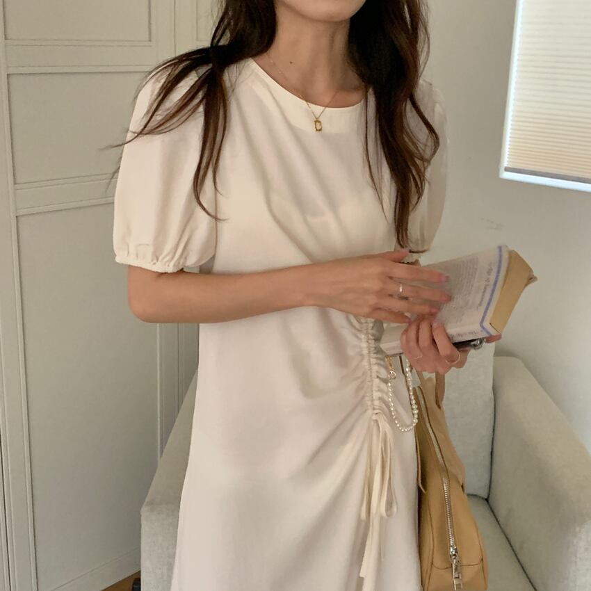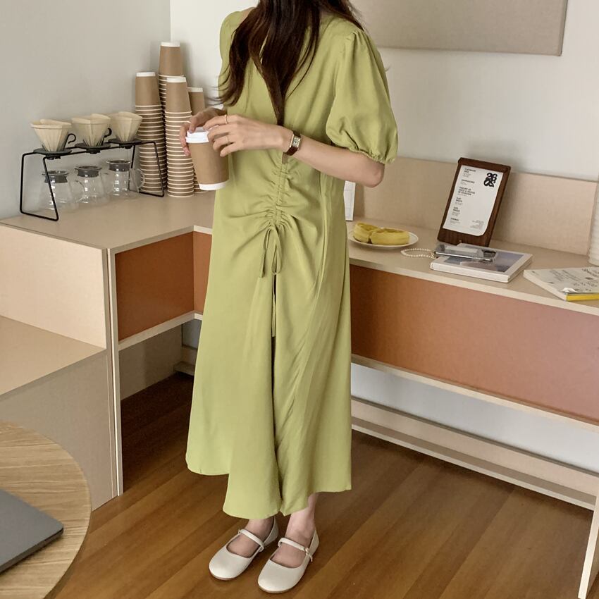 【送料無料】2色 半袖ワンピース ロング 無地 ギャザー 上品 ロング ガーリー プリティ キュート フレア エレガント きれいめ シンプル ミモレ丈 ゆったり お姉さん カワイイ レディース 着痩せ 着回し 脚長 ワンサイズ フリーサイズ おしゃれ 夏 サマー グリーン ホワイト 緑 白 大人可愛い 普段使い デイリー使い 休日 お出かけ デート 女子会 存在感 主役級 こなれ感 韓国ファッション 海外トレンド インスタ映え 大人気 流行 10代 20代 30代 40代 プチプラ db3569