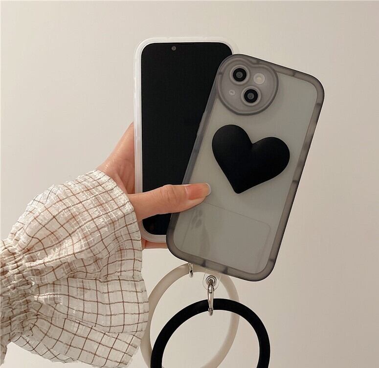【送料無料】 2色 スマホケース スマホカバー シンプル ハート 白 黒 ホワイト ブラック クリア ストラップ チェーン リング ホールド 落下防止 ラブリー ガーリー 可愛い おしゃれ アクセサリー 携帯ケース 携帯カバー iphone X XR XS MAX iphone 11 11Pro MAX iphone 12 12Pro MAX iphone 13 13Pro MAX ケース かわいい 大人可愛い 個性的 韓国系 人気 インスタ映え アイテム 小物 トレンド db3612