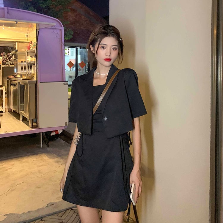 ショート丈ジャケットとレースアップがセクシーなワンピースのセットアップ♪