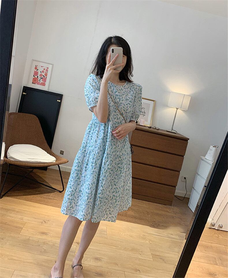 【送料無料】半袖ワンピース フレア ボタニカル パフスリーブ レトロ 清楚 膝丈 ミニ ウエストマーク ゆったり 上品 ガーリー プリティ シンプル お姉さん カワイイ レディース 着痩せ 着回し 脚長 S M L 大きいサイズ おしゃれ 夏 サマー グリーン 緑 大人可愛い 普段使い デイリー使い 休日 お出かけ デート 女子会 存在感 主役級 こなれ感 韓国ファッション 海外トレンド インスタ映え 大人気 流行 10代 20代 30代 40代 プチプラ db3586