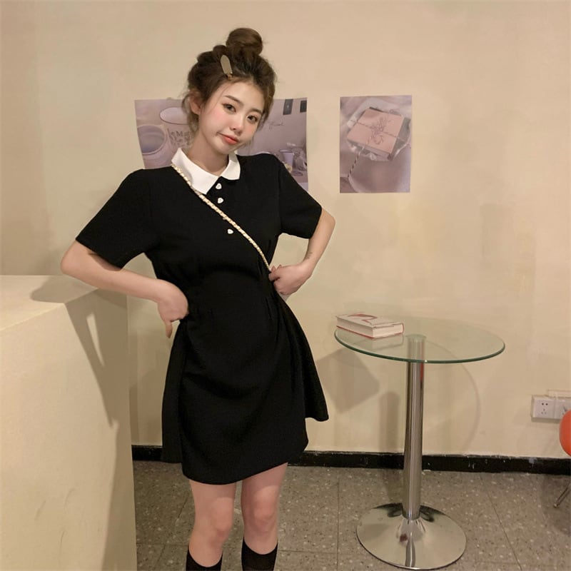 【送料無料】襟付きワンピース ポロシャツ風 半袖 襟付き ポロ襟 ブラック ミニ丈 ミモレ丈 膝上丈 選べる着丈 フレアワンピース ハイウエスト きれいめ 上品 華やか 学生 ゆったり お姉さん カワイイ ガーリー キュート レディース 着痩せ 着回し 脚長 おしゃれ 夏 サマー 大人可愛い 普段使い デイリー使い 休日 お出かけ デート 女子会 存在感 主役級 こなれ感 韓国ファッション 海外トレンド インスタ映え 大人気 流行 10代 20代 30代 40代 プチプラ db3679