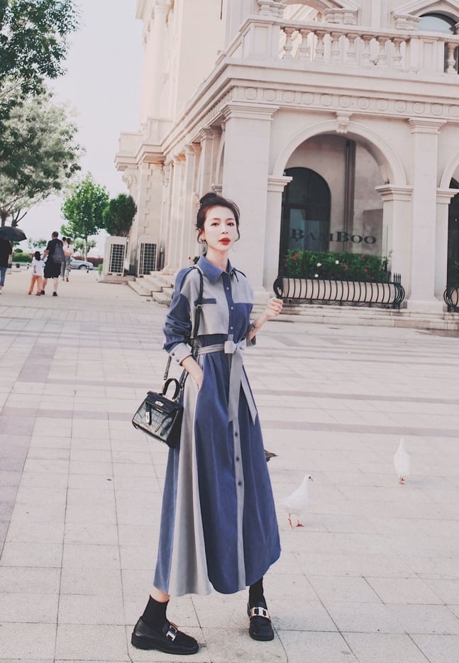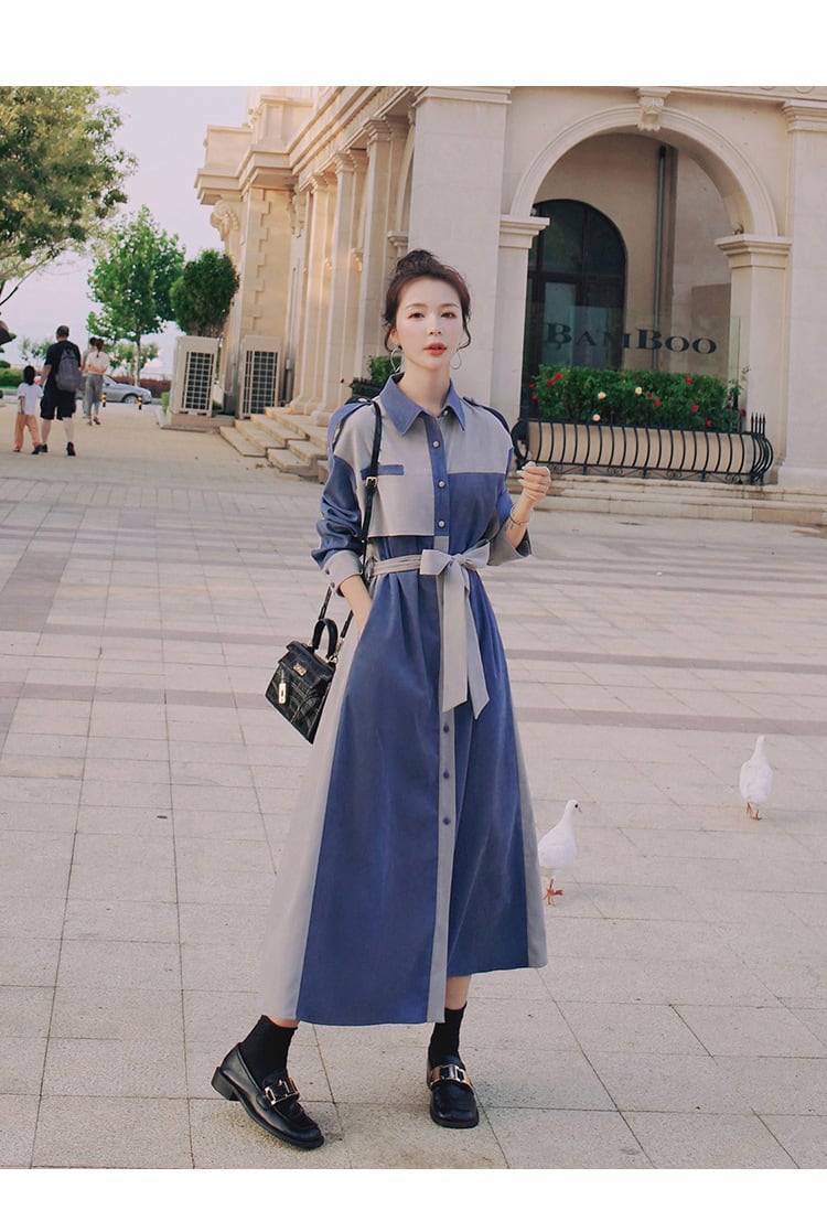 マルチカラー配色がこなれたトレンチ風ロングシャツワンピースです^^