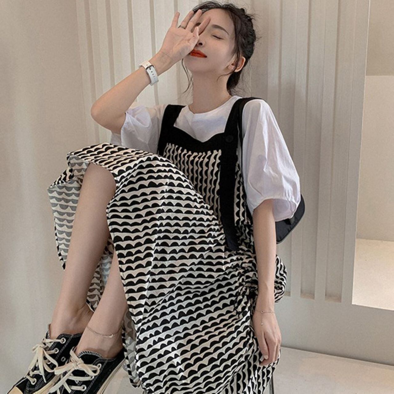 【送料無料】半袖セットアップ ツーピース 2点セット ロング ミモレ丈 ボーダー サロペット 楽ちん カジュアル クール カッコイイ 大人 お姉さん きれいめ ゆったり ラフ モテる レディース シンプル ホワイト ブラック 白 黒 華やか 大人可愛い S M L 脚長 美脚 着痩せ 着回し スタイルアップ カワイイ 夏 デート 女子会 普段使い デイリー使い 休日 お出かけ 存在感 主役級 こなれ感 インスタ映え 韓国ファッション 海外トレンド 大人気 高見え 流行 10代 20代 30代 db3592