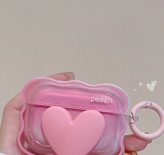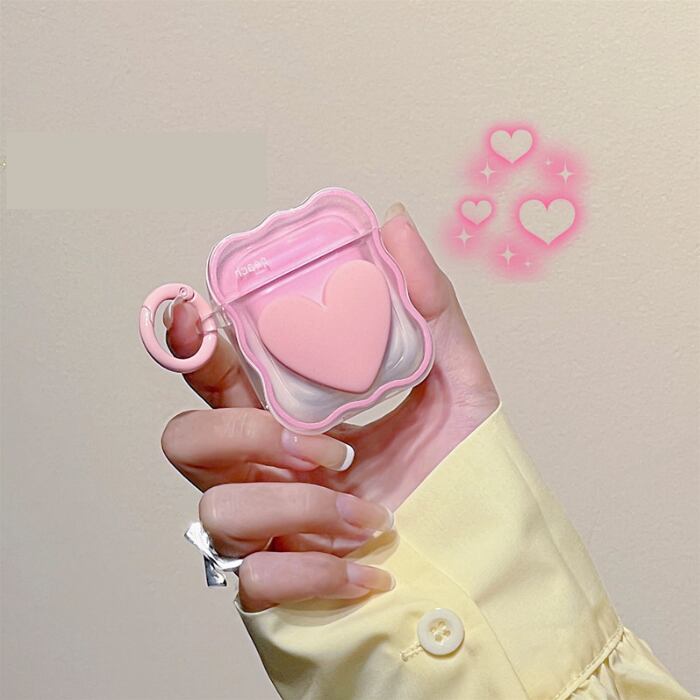 シンプルながらもカラフルな大きなハートが可愛いAirPodsケース。
