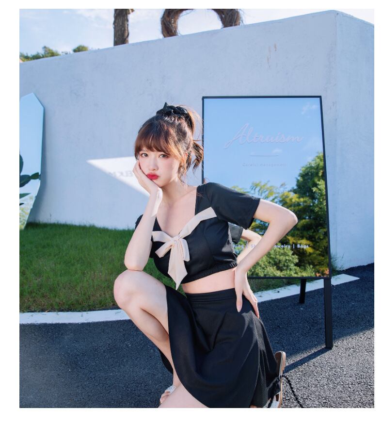 【送料無料】3色 半袖水着 タンキニ 2点セット ツーピース リボン フリル 着痩せ ガーリー プリティ キュート レトロ スリム ミニ ショート丈 可愛い 大人 お姉さん イイ女 スタイルアップ モテ レディース ブラック ピンク グリーン 黒 緑 S M L XL 夏 サマー リゾート バカンス 海 プール スイム スイムウェア おしゃれ デート 大人可愛い 存在感 こなれ感 抜け感 休日 主役級 インスタ映え 韓国ファッション 海外トレンド 大人気 高見え 流行 10代 20代 30代 db3718