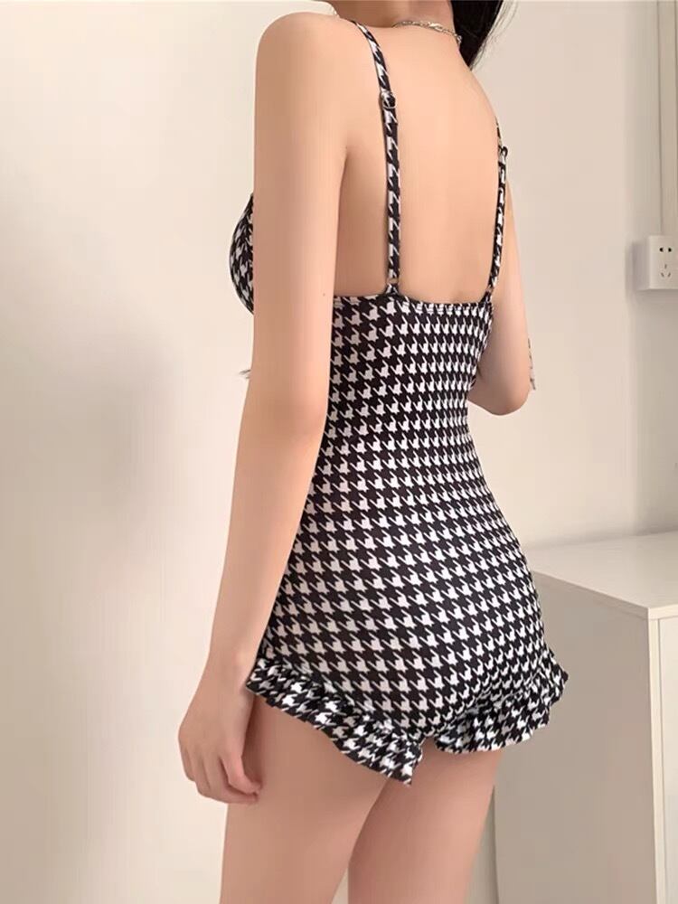 【送料無料】長袖水着 千鳥格子 グレンチェック ワンピース 2点セット ツーピース 着痩せ ガーリー キュート プリティ レトロ スリム ミニ ショート丈 可愛い 大人 お姉さん イイ女 スタイルアップ モテ レディース ブラック 黒 M L XL 夏 サマー リゾート バカンス 海 プール スイム スイムウェア おしゃれ デート 大人可愛い 存在感 こなれ感 抜け感 休日 主役級 インスタ映え 韓国ファッション 海外トレンド 大人気 高見え 流行 10代 20代 30代 db3721
