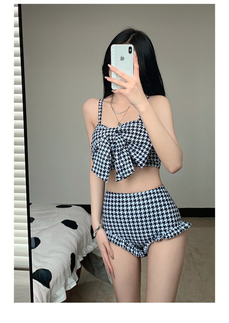【送料無料】ビキニ 水着 リボン グレンチェック 千鳥格子 着痩せ ガーリー キュート プリティ シック レトロ ハイウエスト スタイリッシュ 可愛い 大人 お姉さん イイ女 スタイルアップ モテ レディース ブラック 黒 M L XL 夏 サマー リゾート バカンス 海 プール スイム スイムウェア おしゃれ デート 大人可愛い 存在感 こなれ感 抜け感 休日 主役級 インスタ映え 韓国ファッション 海外トレンド 大人気 高見え 流行 10代 20代 30代 db3737