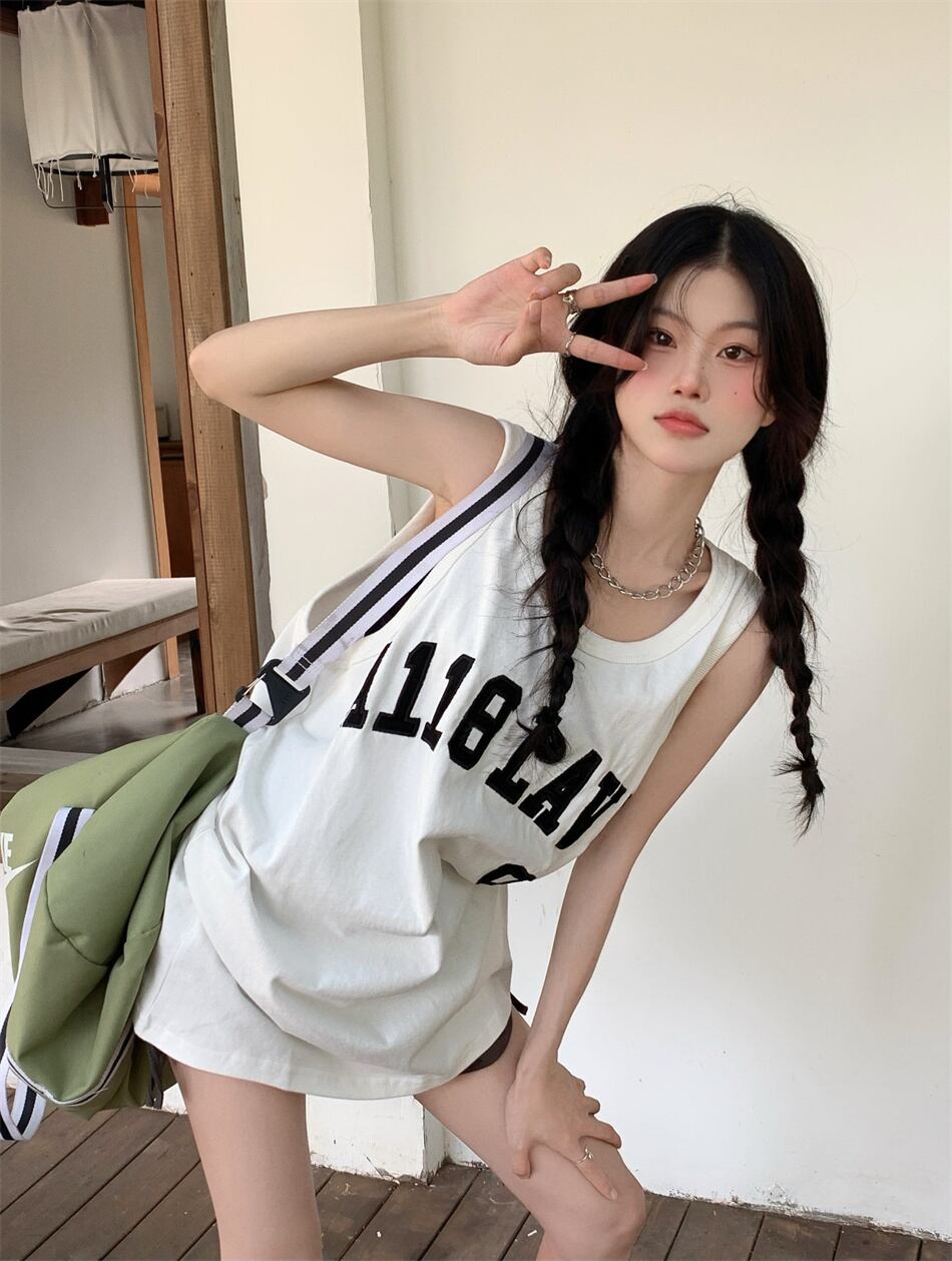 【送料無料】3色 ロングタンクトップ ロゴ スポーティ カッコイイ クール レトロ ポップ カジュアル 着回し ゆったり スタイリッシュ モテる 着痩せ レディース トップス ワンサイズ フリーサイズ ホワイト ベージュ ブルー 白 青 おしゃれ デート 大人可愛い お出かけ 存在感 こなれ感 抜け感 普段使い デイリー使い 休日 主役級 インスタ映え 韓国ファッション 海外トレンド 大人気 高見え 流行 10代 20代 30代 40代 プチプラ db3750
