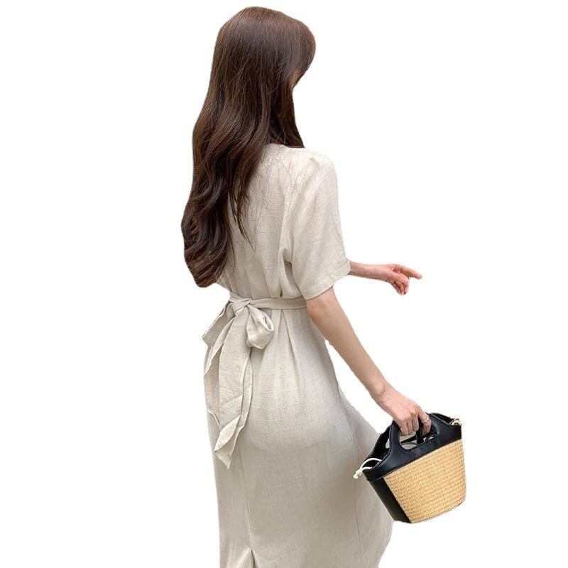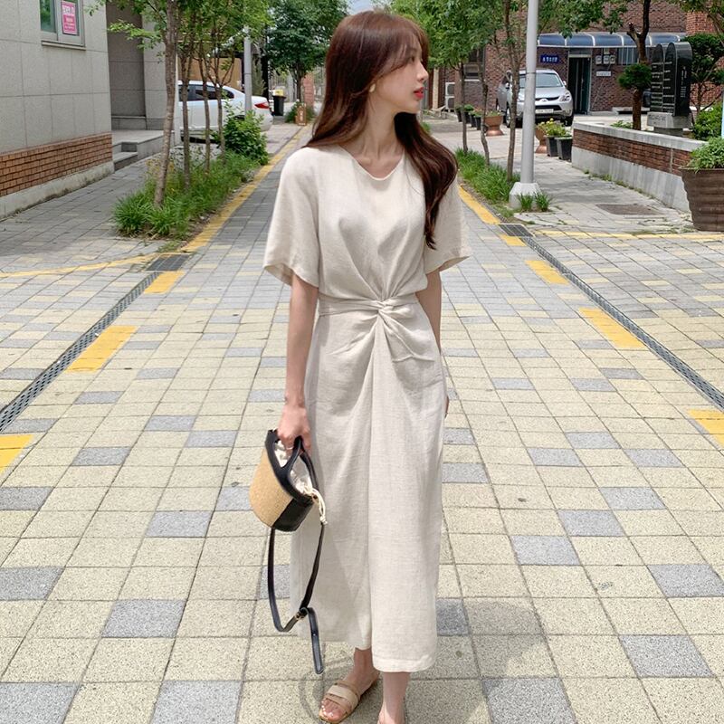 【送料無料】2色 半袖ワンピース ロング ミモレ丈 スカート ゆったり 無地 ウエストマーク レトロ クール きれいめ キュート プリティ シンプル ハイウエスト 大人 スタイルアップ お姉さん レディース 着痩せ 着回し 脚長 ワンサイズ フリーサイズ おしゃれ 夏 サマー グリーン ベージュ 大人可愛い 普段使い デイリー使い 休日 お出かけ デート 女子会 存在感 主役級 こなれ感 韓国ファッション 海外トレンド インスタ映え 大人気 流行 10代 20代 30代 40代 プチプラ db3897