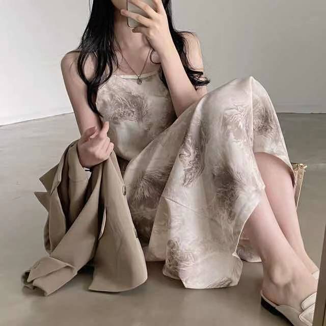 【送料無料】2色 キャミワンピース ロング ミモレ丈 スカート ゆったり リッチ エレガント 南国 リゾート レトロ ガーリー きれいめ キュート 絞り染め タイダイ 大人 スタイルアップ お姉さん レディース 着痩せ 着回し 脚長 ワンサイズ フリーサイズ おしゃれ 春 夏 ベージュ グレー 灰色 大人可愛い 普段使い デイリー使い 休日 お出かけ デート 女子会 存在感 主役級 こなれ感 韓国ファッション 海外トレンド インスタ映え 大人気 流行 10代 20代 30代 40代 プチプラ db3900