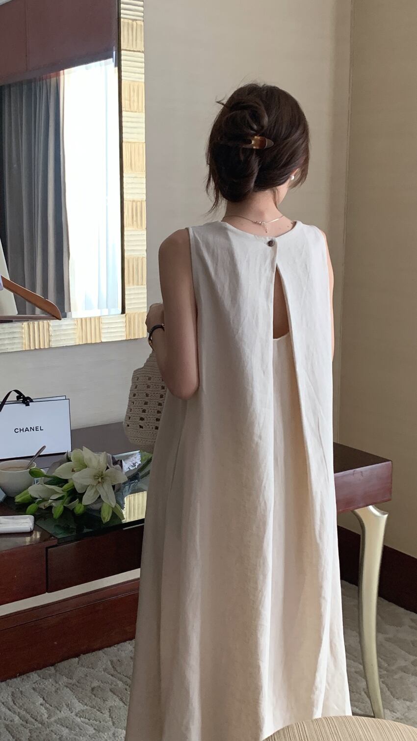 【送料無料】2色 ノースリーブワンピース ロング マキシ丈 スカート ゆったり レトロ クール きれいめ カッコイイ コットン シンプル 大人 スタイルアップ お姉さん レディース 着痩せ 着回し 脚長 ワンサイズ フリーサイズ おしゃれ 春 夏 ベージュ ブラック 黒 大人可愛い 普段使い デイリー使い 休日 お出かけ デート 女子会 存在感 主役級 こなれ感 韓国ファッション 海外トレンド インスタ映え 大人気 流行 10代 20代 30代 40代 プチプラ db3904