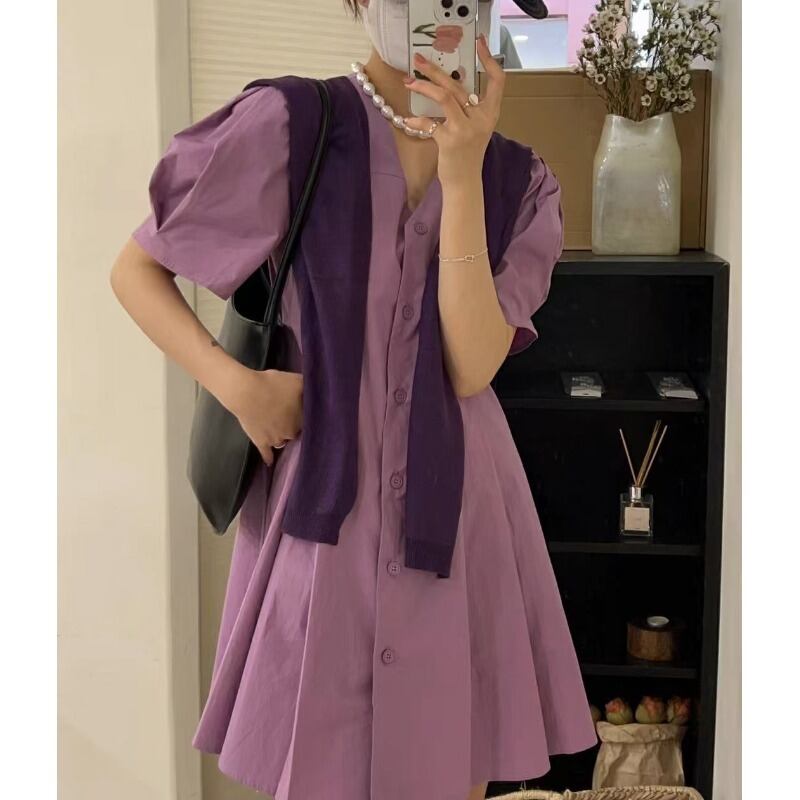 【送料無料】2色 半袖ワンピース ミニ ショート丈 スカート ゆったり レトロ クール きれいめ ガーリー キュート シンプル 爽やか 大人 ウエストマーク スタイルアップ お姉さん レディース 着痩せ 着回し 脚長 ワンサイズ フリーサイズ おしゃれ 春 夏 グリーン パープル 緑 紫 大人可愛い 普段使い デイリー使い 休日 お出かけ デート 女子会 存在感 主役級 こなれ感 韓国ファッション 海外トレンド インスタ映え 大人気 流行 10代 20代 30代 40代 プチプラ db3906