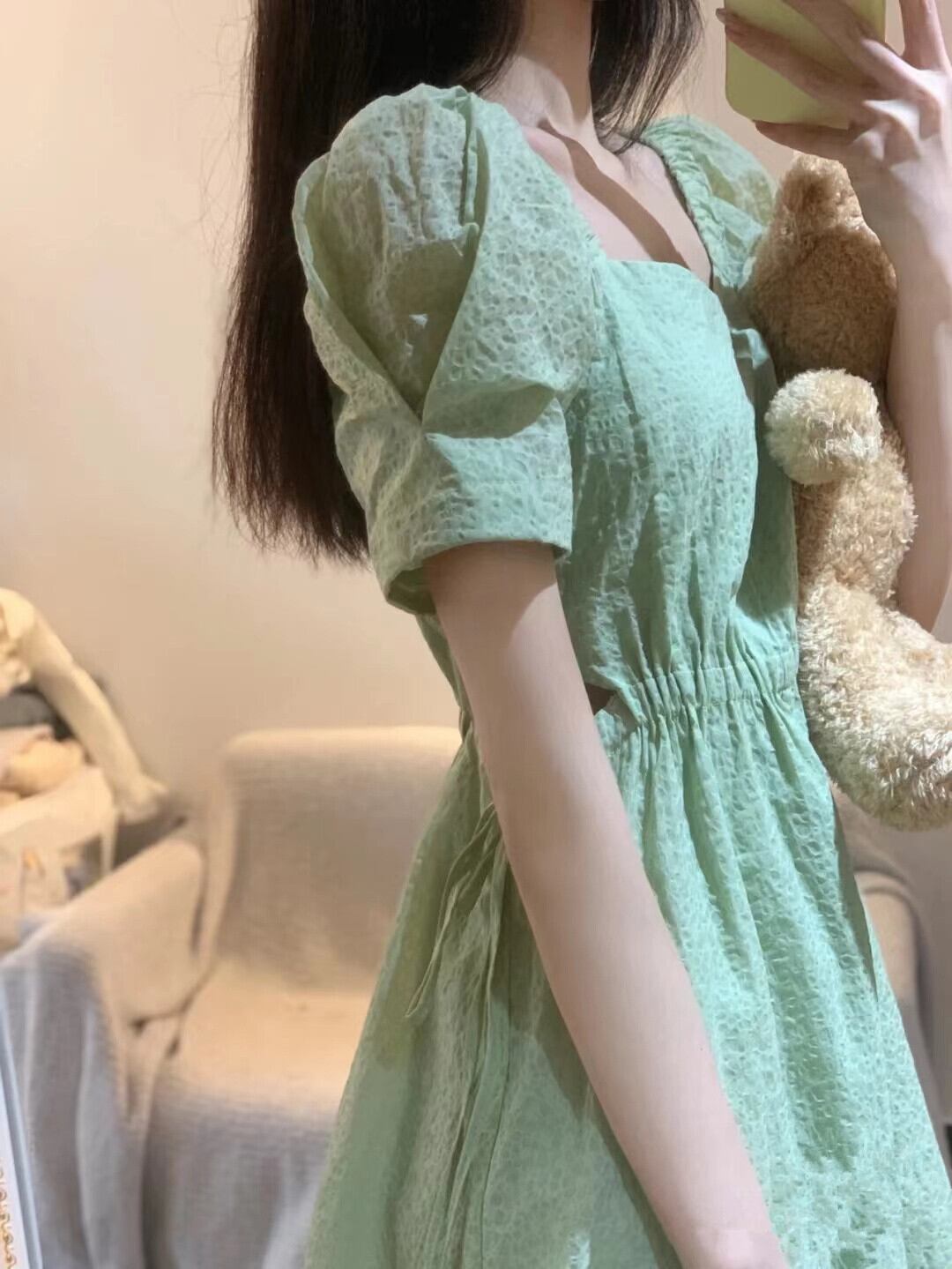 【送料無料】半袖ワンピース パフスリーブ ミニ ショート丈 スカート ガーリー キュート プリティ シンプル 大人 スタイルアップ ウエストマーク スクエアネック お姉さん レディース 着痩せ 着回し 脚長 S M L XL 2XL 大きいサイズ おしゃれ 春 夏 ブルー グレー ブラック 青 灰色 黒 大人可愛い 普段使い デイリー使い 休日 お出かけ デート 女子会 存在感 主役級 こなれ感 韓国ファッション 海外トレンド インス映え 大人気 流行 10代 20代 30代 プチプラ db3909