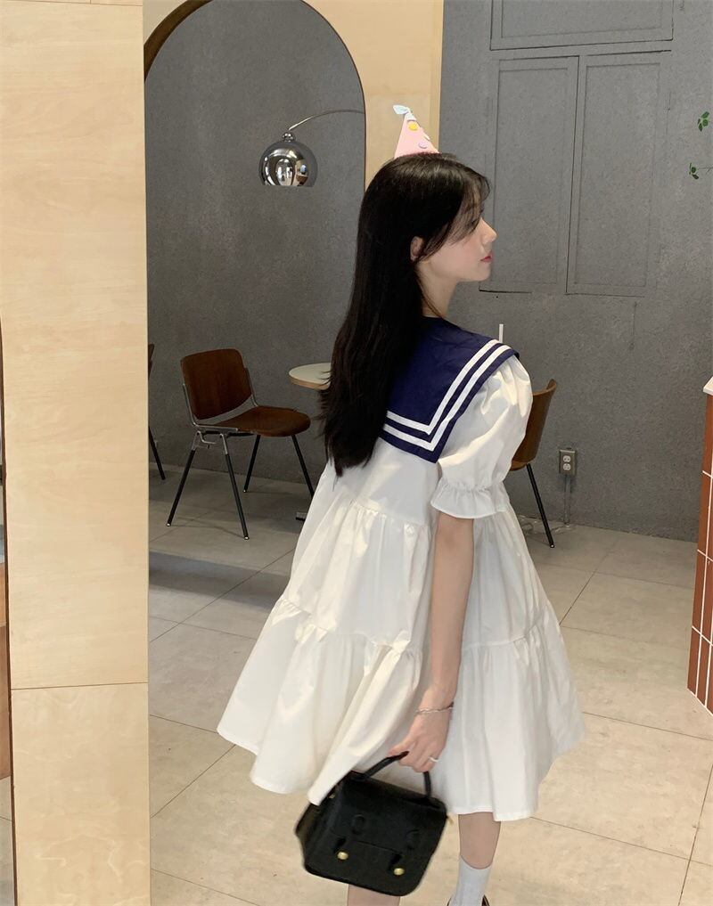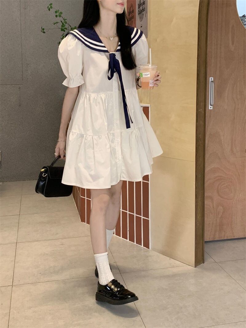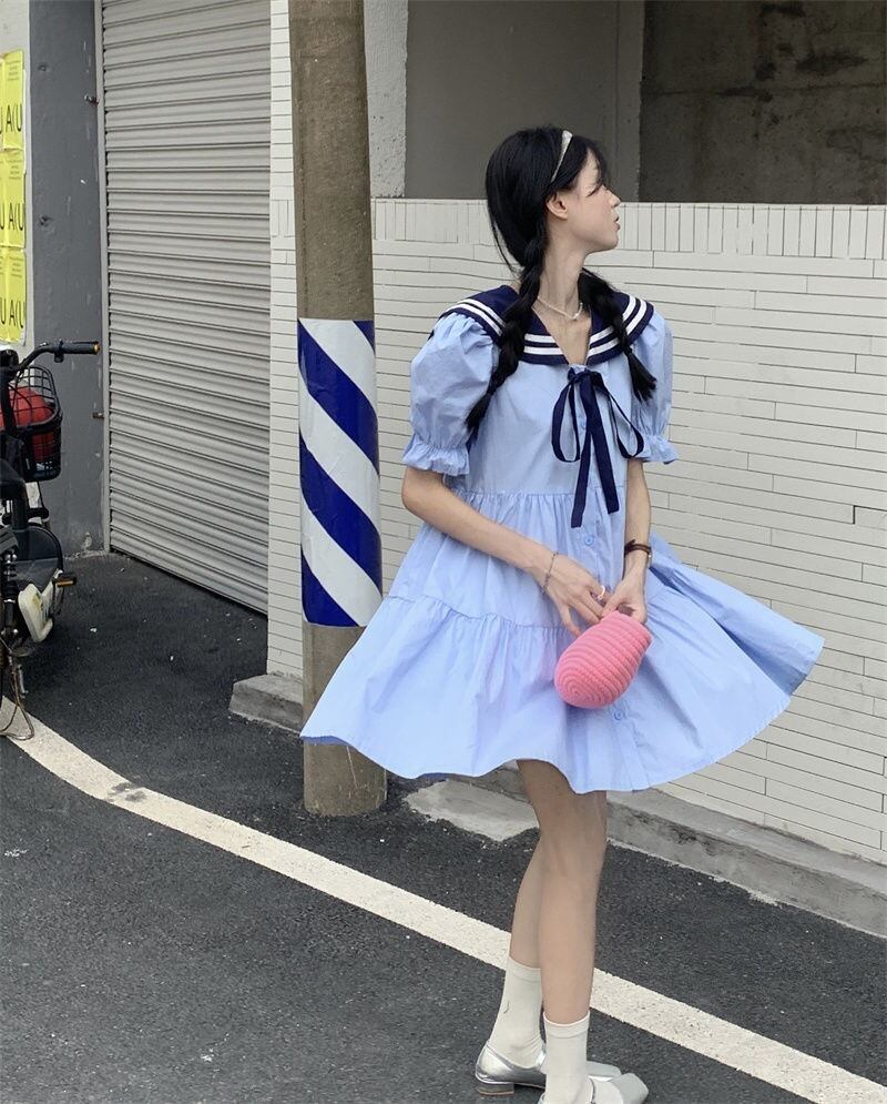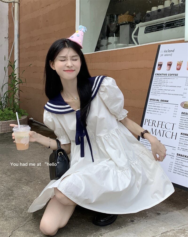 【送料無料】2色 半袖ワンピース リボン ミニ ショート丈 パフスリーブ セーラー風 スカート ガーリー キュート プリティ ふんわり シンプル 大人 スタイルアップ ウエストマーク お姉さん レディース 着痩せ 着回し 脚長 S M L XL 大きいサイズ おしゃれ 春 夏 ホワイト ブルー 白 青 大人可愛い 普段使い デイリー使い 休日 お出かけ デート 女子会 存在感 主役級 こなれ感 韓国ファッション 海外トレンド インス映え 大人気 流行 10代 20代 30代 プチプラ db3912