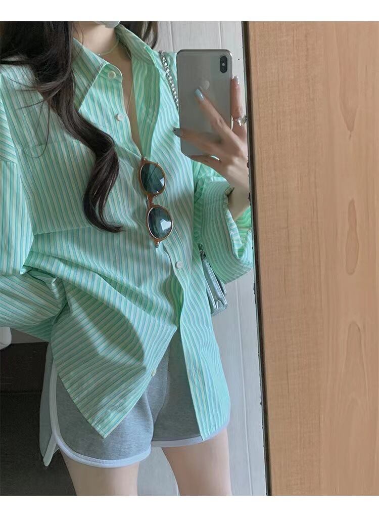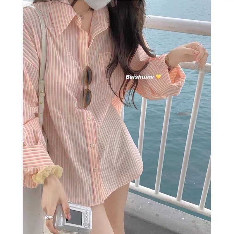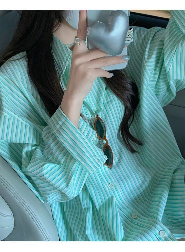 【送料無料】3色 長袖シャツ ブラウス ロングシャツ 襟付き ロング シャツワンピ ストライプ ゆったりめ ビックシルエット 着回し ガーリー プリティ キュート きれいめ モテる 着痩せ レディース S M L XL 大きいサイズ 春 夏 秋 ホワイト グリーン ピンク 白 緑 おしゃれ デート 大人可愛い お出かけ 存在感 こなれ感 抜け感 普段使い デイリー使い 休日 主役級 インスタ映え 韓国ファッション 海外トレンド 大人気 高見え 流行 10代 20代 30代 40代 プチプラ db3915