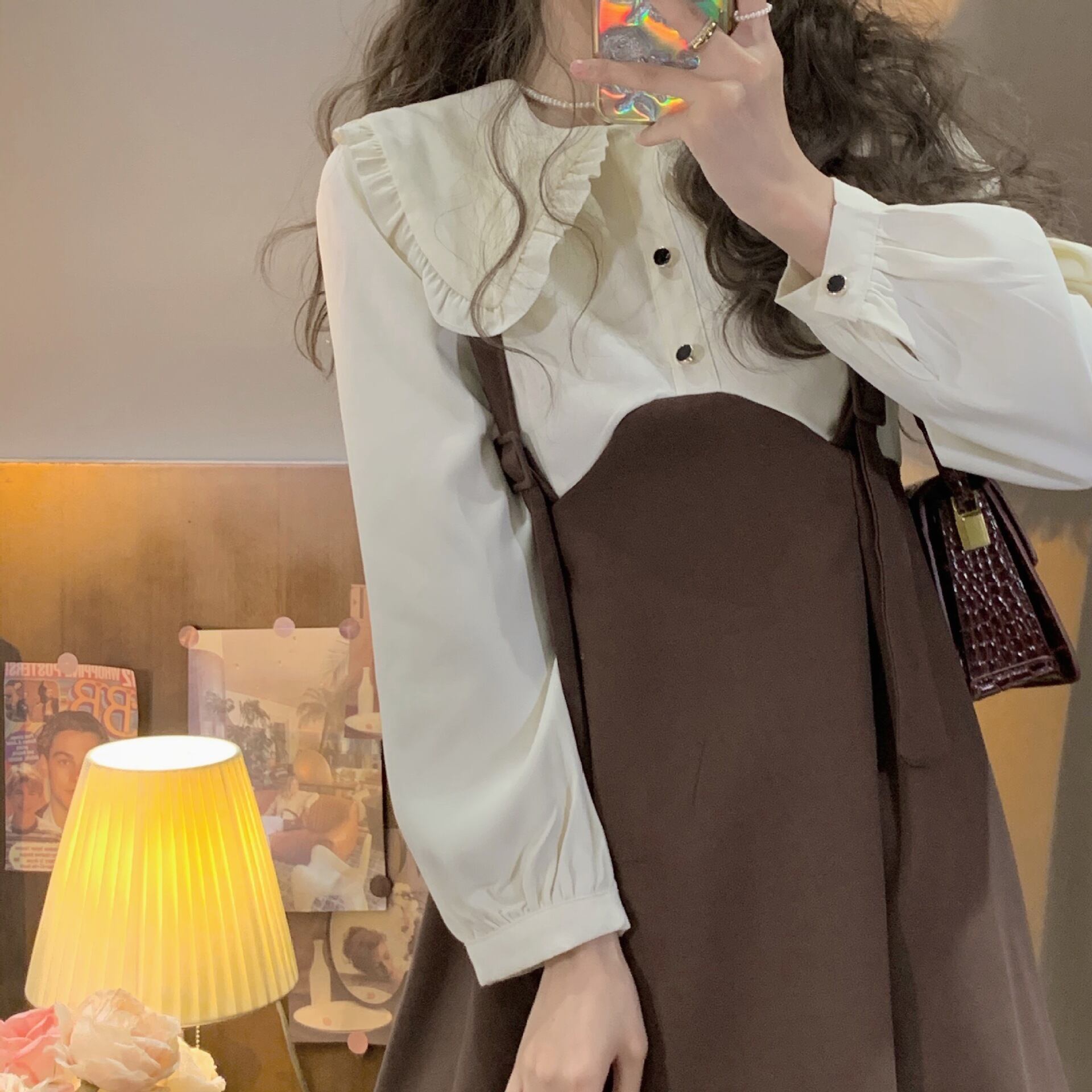 【送料無料】 ビッグカラーワンピース ブラウス フェイクツーピース バイカラー かわいい 大人可愛い おしゃれ お洒落 大人女子 こなれ感 ラブリー キュート 個性的 主役級 存在感 フェミニン 無地 レディース ショート ショート丈 袖あり 長袖 襟付き 甘め プリーツ ハイウエスト 無地 春 秋 発表会 お呼ばれ 10代 20代 女の子 学生 通学 デート お出かけ 女子会 着回し 普段使い 韓国 韓国系 オルチャン ファッション コーデ トレンド 流行 インスタ映え S M L XL db4024