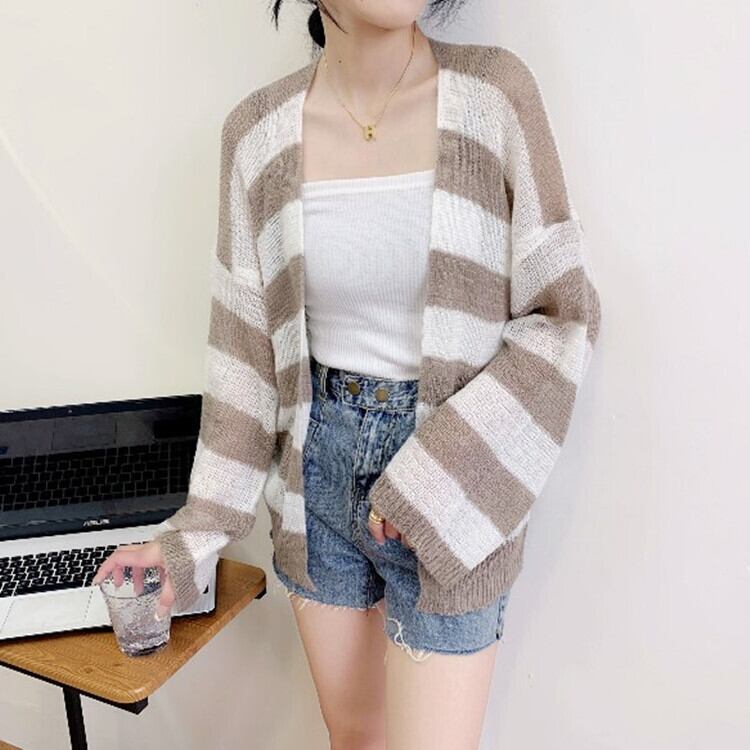 【送料無料】6色 長袖カーディガン ニット コットン 羽織り ボーダー ゆったり カッコイイ カジュアル クール レトロ 着回し 襟付き モテる 着痩せ レディース ワンサイズ フリーサイズ 春 夏 ピンク キャメル ライトブルー グレー ブラック ベージュ おしゃれ デート 大人可愛い お出かけ 存在感 こなれ感 抜け感 普段使い デイリー使い 休日 主役級 インスタ映え 韓国ファッション 海外トレンド 大人気 高見え 流行 10代 20代 30代 40代 プチプラ db3920