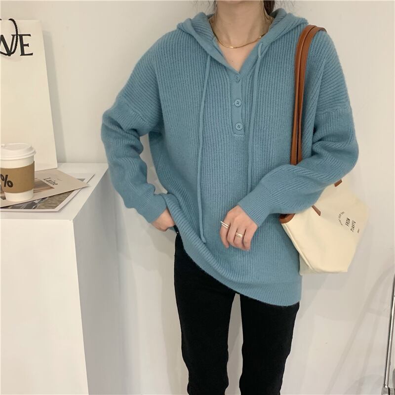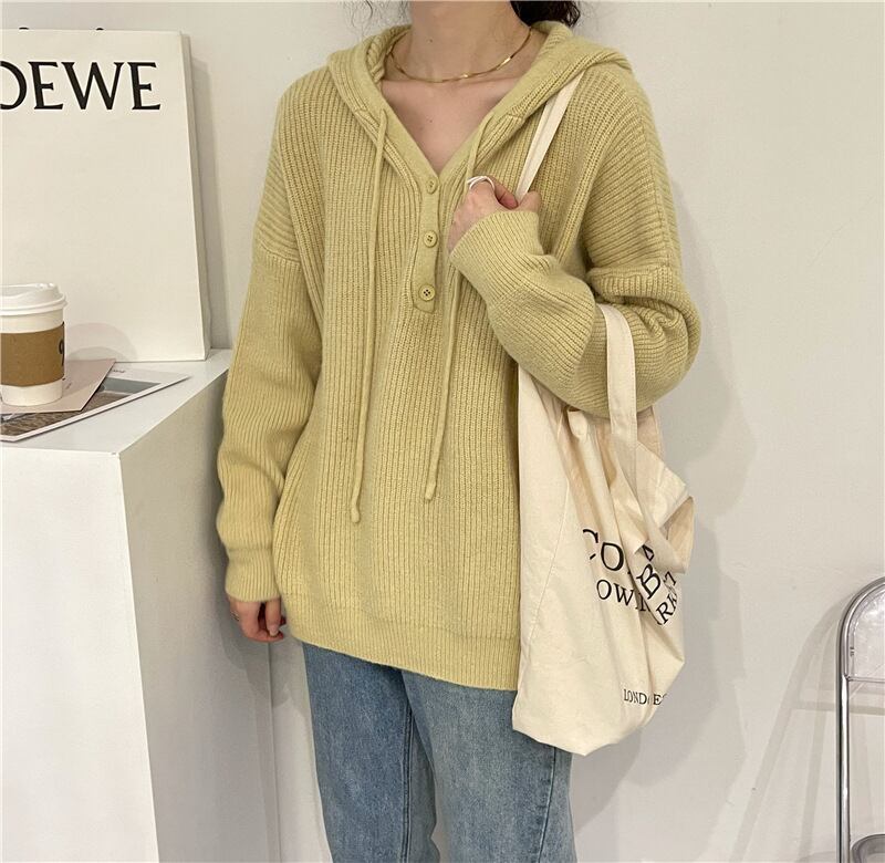 【送料無料】7色 長袖ニット セーター プルオーバー フード トップス ゆったり ルーズ レトロ 着回し シック カジュアル モテる 着痩せ レディース ワンサイズ フリーサイズ 春 秋 冬 サマー オータム ウインター カーキ イエロー グリーン ブラック ブルー ホワイト オレンジ おしゃれ デート 大人可愛い お出かけ 存在感 こなれ感 抜け感 普段使い デイリー使い 休日 主役級 インスタ映え 韓国ファッション 海外トレンド 大人気 高見え 流行 10代 20代 30代 プチプラ db3925