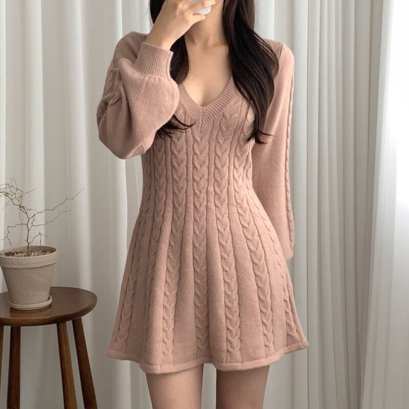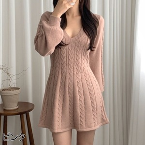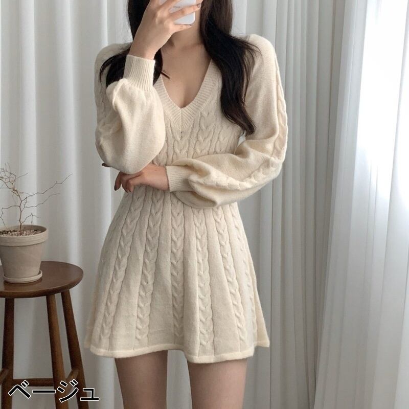 【送料無料】4色 ニットワンピース ケーブルニット Vネック 甘め かわいい 大人可愛い きれいめ おしゃれ お洒落 こなれ感 ラブリー キュート ガーリー フェミニン ミニ丈 ショート丈 長袖 レース 主役級 存在感 秋 冬 10代 20代 30代 レディース 女性用 学生 通学 デート お出かけ 女子会 着回し 普段使い 韓国 韓国系 オルチャン ファッション コーデ スタイル モテ トレンド 流行 インスタ映え ワンサイズ フリーサイズ 黒 ブラック カーキ ベージュ ピンク db4088