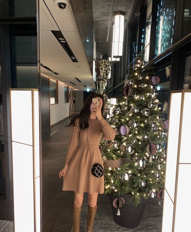 ふんわりと広がるAラインシルエットが女性らしさを引き立てるニットワンピースです♪