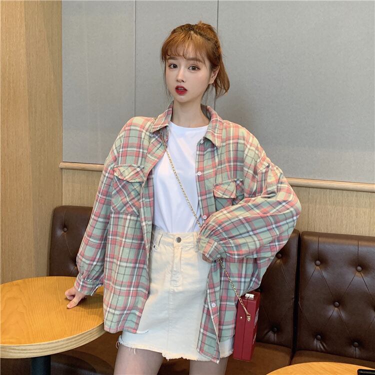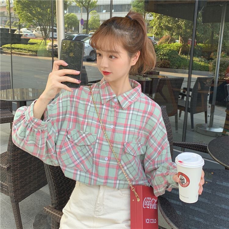 【送料無料】3色 チェック柄シャツ ブラウス オーバーサイズ トップス かわいい 大人可愛い カジュアル おしゃれ お洒落 こなれ感 ラフ ラブリー キュート レディース ミディアム丈 長袖 襟付き ドロップショルダー 甘め ポケット 秋 10代 20代 女の子 学生 通学 デート お出かけ 女子会 休日 旅行 着回し 普段使い 韓国 韓国系 オルチャン ファッション コーデ スタイル モテ 体系カバー インスタ映え S M L XL 2XL ゆったり ゆる ブルー グリーン オレンジ db4040