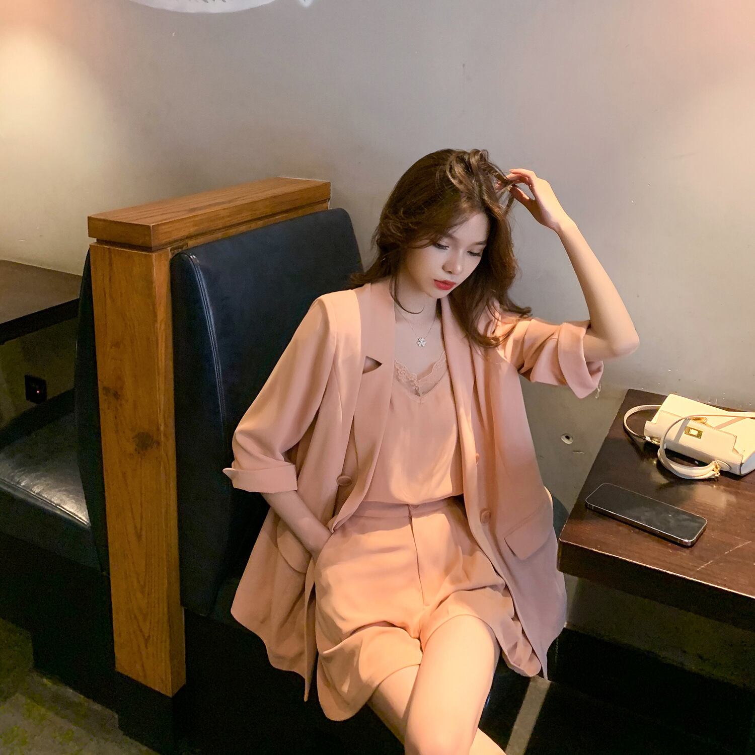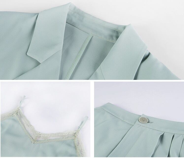 【送料無料】2色 長袖ジャケット キャミソール ショートパンツ セットアップ ゆったり ミニ スタイルアップ きれいめ クール エレガント 楽ちん 大人 お姉さん モテる レディース ライトグリーン ピンク 緑 華やか 大人可愛い 春 夏 S M L XL 2XL 3XL 4XL 脚長 美脚 着痩せ 可愛い デート 女子会 普段使い デイリー使い 休日 お出かけ 存在感 主役級 こなれ感 インスタ映え 韓国ファッション 海外トレンド 大人気 高見え 流行 プチプラ 10代 20代 30代 db3928