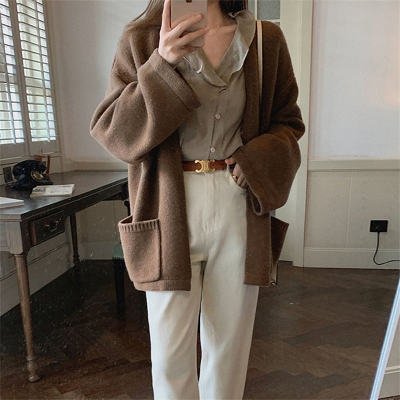 【送料無料】5色 長袖ニット セーター 羽織り きれいめ トップス ゆったり ルーズ レトロ 着回し シック カジュアル モテる 着痩せ レディース ワンサイズ フリーサイズ 秋 冬 オータム ウインター キャメル ブラウン ホワイト ブルー ピンク 茶色 白 青 おしゃれ デート 大人可愛い お出かけ 存在感 こなれ感 抜け感 普段使い デイリー使い 休日 主役級 インスタ映え 韓国ファッション 海外トレンド 大人気 高見え 流行 10代 20代 30代 40代 プチプラ db3930
