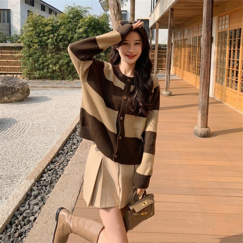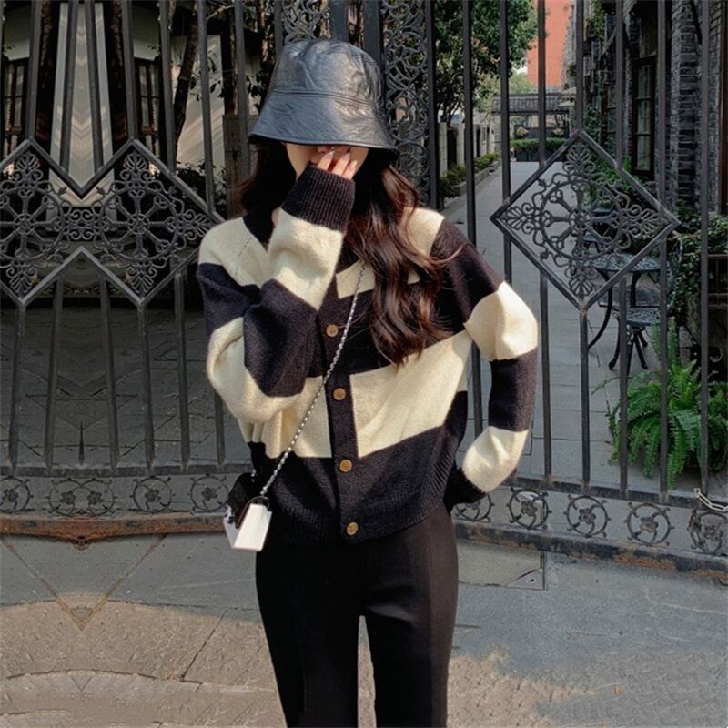【送料無料】3色 長袖ニット セーター ボーダー 羽織り トップス キュート ゆったり ルーズ レトロ 着回し シック カジュアル モテる 着痩せ レディース ワンサイズ フリーサイズ 秋 冬 オータム ウインター グリーン ブラック ブラウン 緑 黒 茶色 おしゃれ デート 大人可愛い お出かけ 存在感 こなれ感 抜け感 普段使い デイリー使い 休日 主役級 インスタ映え 韓国ファッション 海外トレンド 大人気 高見え 流行 10代 20代 30代 40代 プチプラ db3936