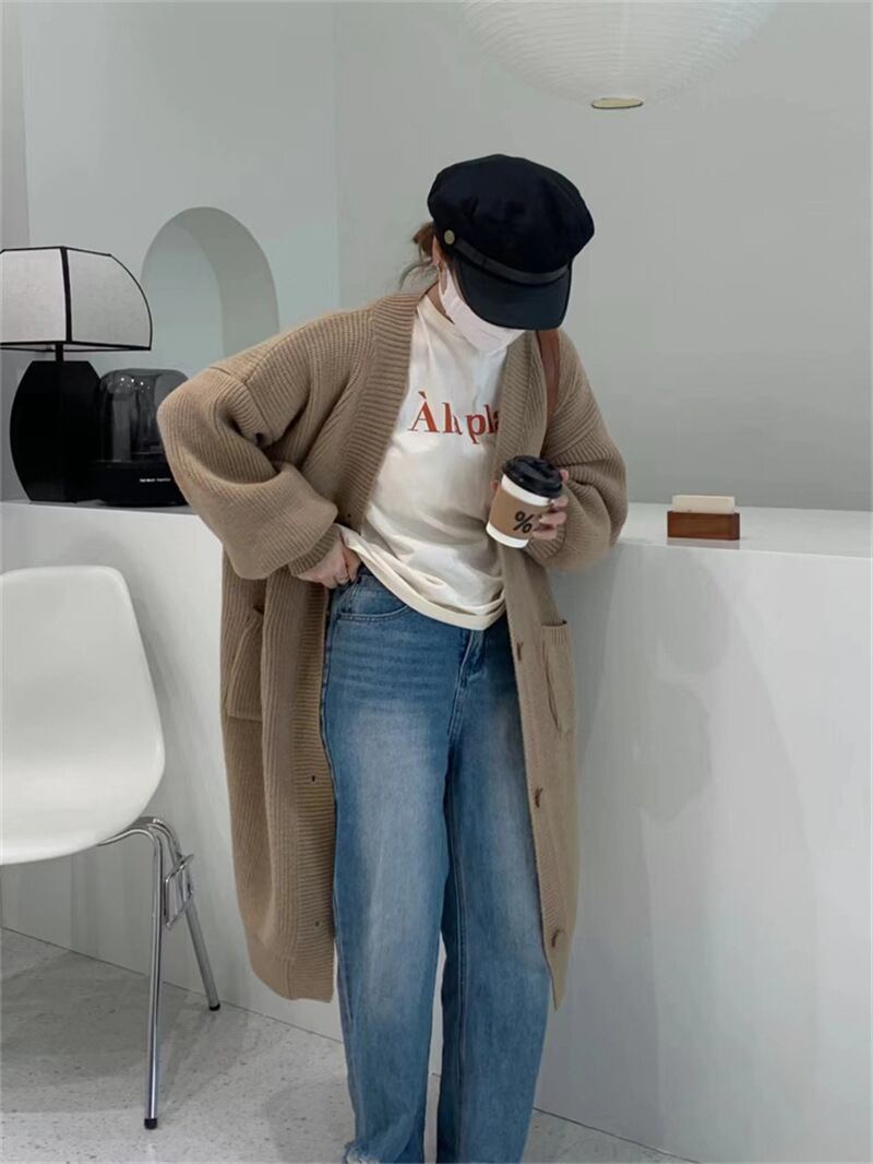【送料無料】4色 長袖ニット セーター カーディガン ロング 無地 羽織り トップス キュート ゆったり ルーズ レトロ 着回し シック カジュアル モテる 着痩せ レディース ワンサイズ フリーサイズ 秋 冬 オータム ウインター ホワイト カーキ オリーブ ブラック おしゃれ デート 大人可愛い お出かけ 存在感 こなれ感 抜け感 普段使い デイリー使い 休日 主役級 インスタ映え 韓国ファッション 海外トレンド 大人気 高見え 流行 10代 20代 30代 40代 プチプラ db3938
