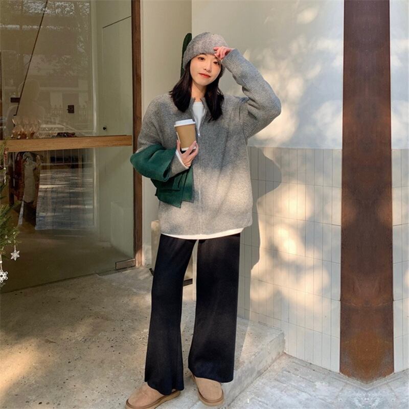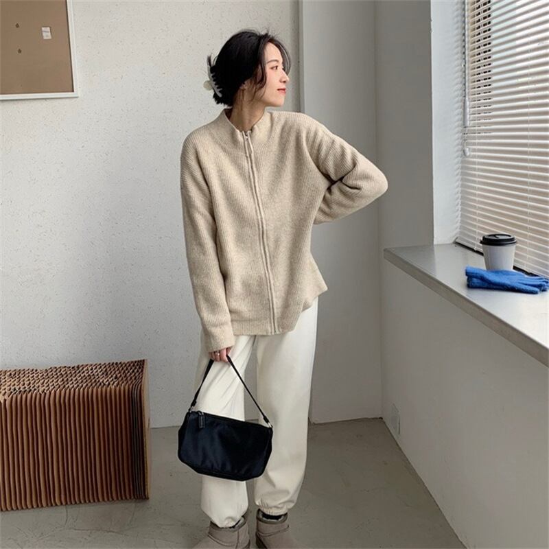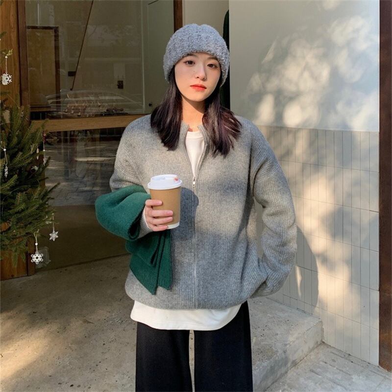 【送料無料】3色 長袖ニット セーター リブ ジッパー 無地 羽織り トップス ゆったり ルーズ レトロ 着回し シック きれいめ エレガント クール モテる 着痩せ レディース ワンサイズ フリーサイズ 秋 冬 オータム ウインター グレー ブラック ベージュ 灰色 黒 おしゃれ デート 大人可愛い お出かけ 存在感 こなれ感 抜け感 普段使い デイリー使い 休日 主役級 インスタ映え 韓国ファッション 海外トレンド 大人気 高見え 流行 10代 20代 30代 40代 プチプラ db3941