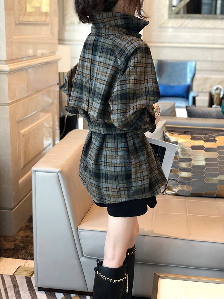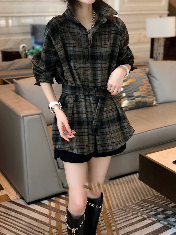 【送料無料】チェック柄コート 長袖ジャケット アウター ウエストベルト付き かわいい 大人可愛い カジュアル おしゃれ お洒落 こなれ感 ラブリー キュート レディース スリム 細身 長袖 襟付き 羽織 前開き レトロ 暖かい 防寒 秋 冬 10代 20代 30代 学生 通学 デート お出かけ 女子会 休日 旅行 着回し 普段使い 韓国 韓国系 オルチャン ファッション コーデ スタイル モテ 体系カバー トレンド インスタ映え S M L XL 2XL 通勤 OL オフィス db4049